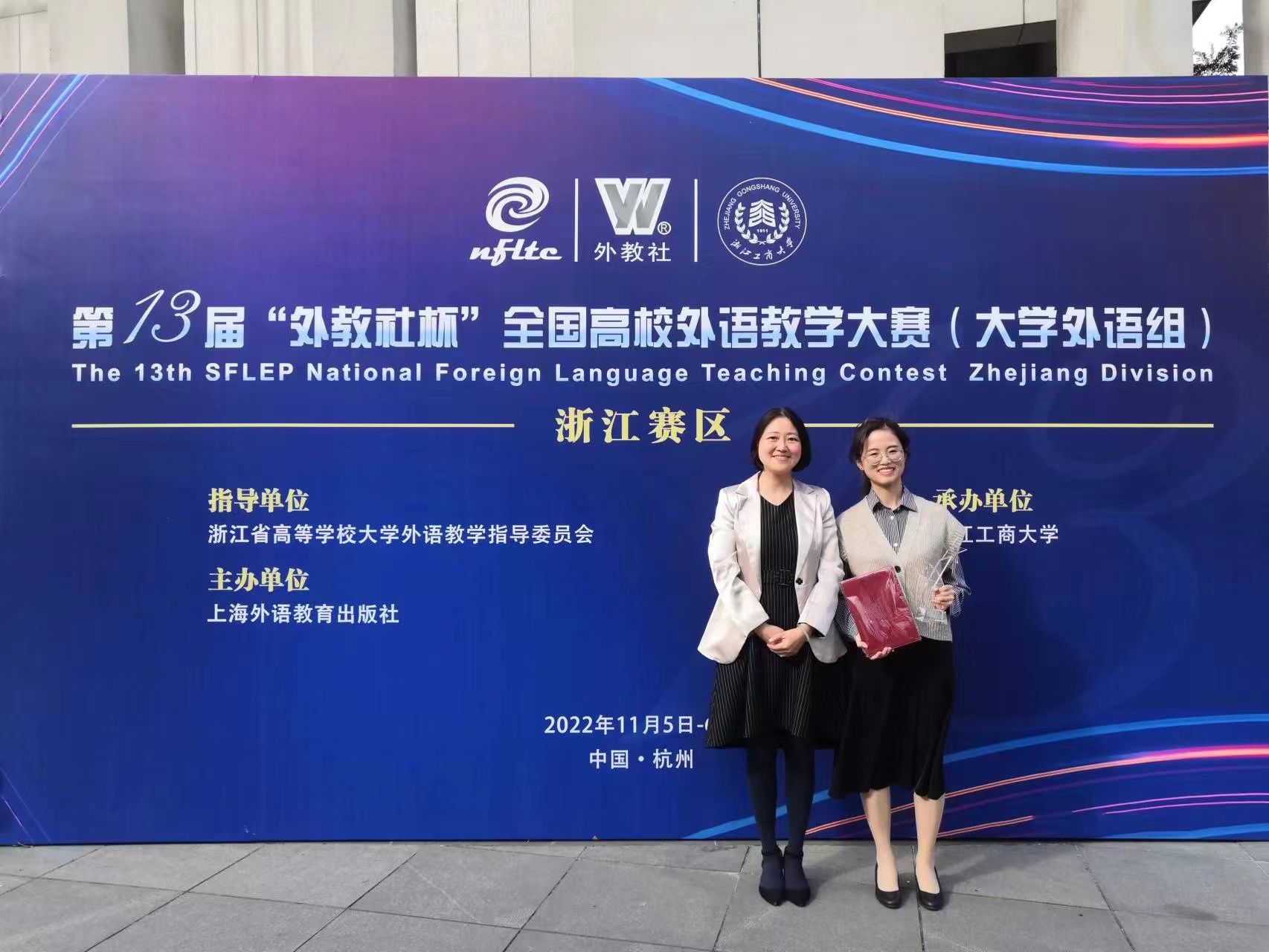 陈文君副教授(右一)获第十三届“外教社杯”全国高等外语教学大赛(浙江赛区)特等奖。