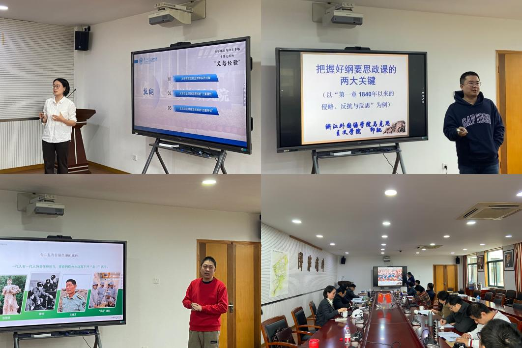 学院聚焦课程建设,先后成功获批《青年学子学青年习近平学习教育》《毛泽东思想和中国特色社会主义理论体系概论》《中国近现代史纲要》等省一流课程。积极参与《习近平谈治国理政》“三进”工作,组织编撰“理论读本”供师生教学使用。根据思政课特点,总结提炼“中班授课+小班研讨+课堂展示”、“红色故事+浙江故事+案例研讨”、“互联网+思政课”等作为思政课教学改革的重点,创新思政课教学,增强学生获得感。近年来,学院获省级教学建设项目4项。