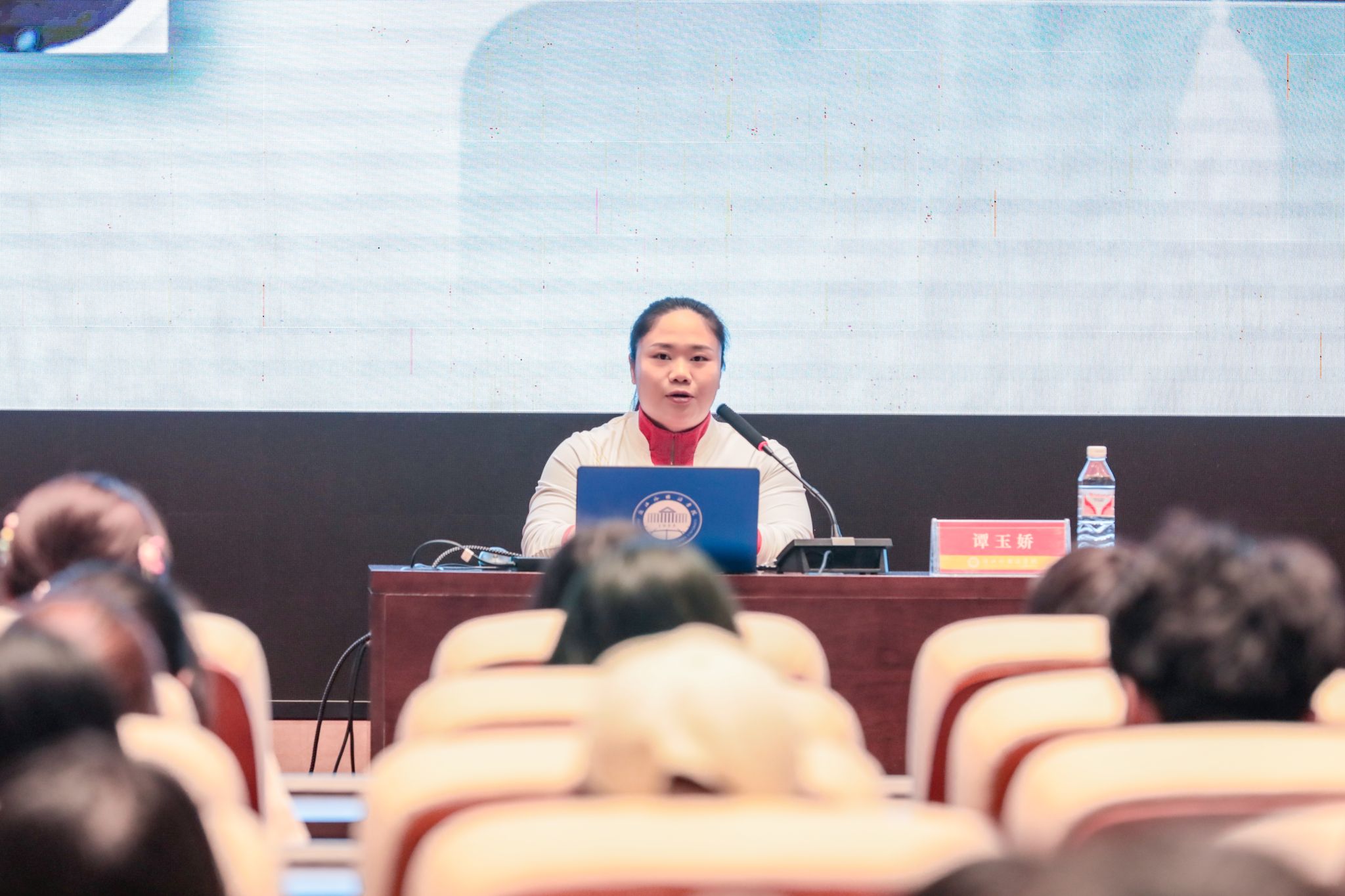 “谭老师,我能和您握握手,感受您手心的茧吗?”“谭老师,预祝您在下一届奥运上再夺冠军!”在谭玉娇为浙外师生分享“举起梦想的重量”讲座结束后,同学们纷纷围到她身边,表达自己的敬意。