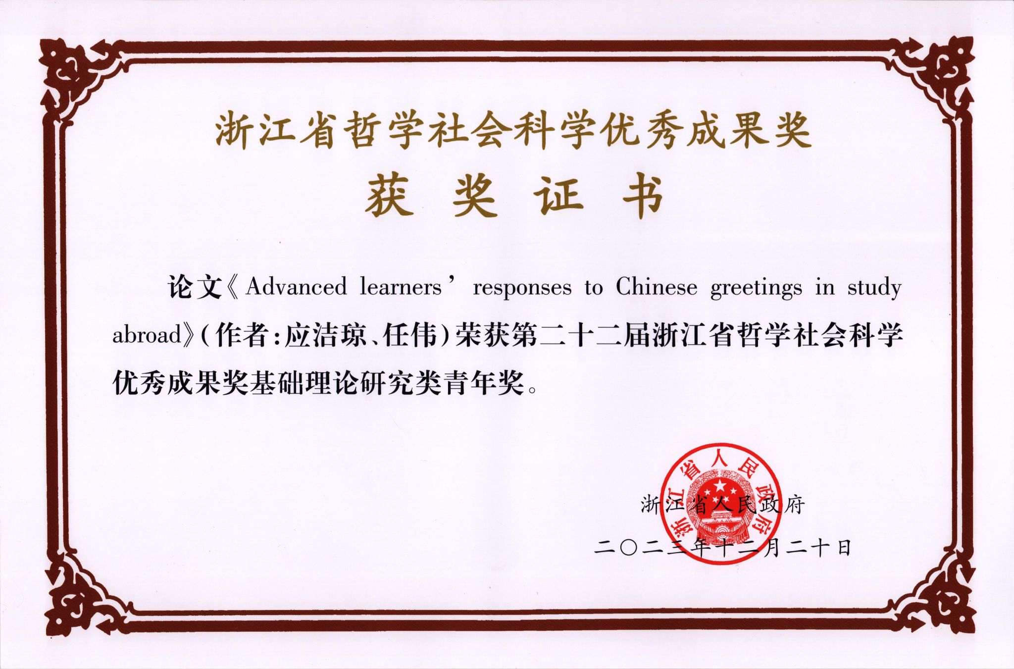 学院应洁琼老师获浙江省哲学社会科学优秀成果奖基础理论研究类青年奖。