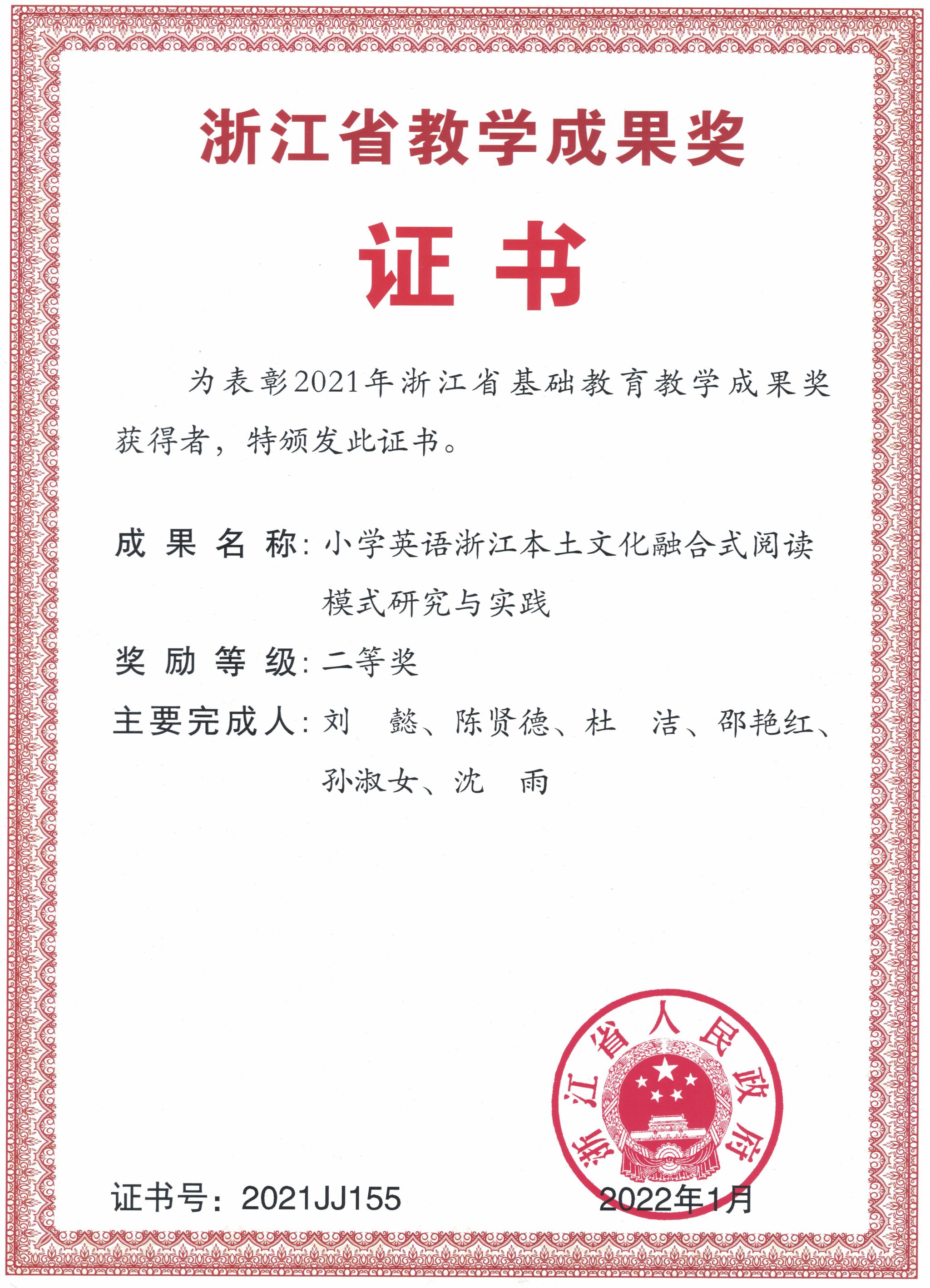 学院刘懿老师所带团队获浙江省教学成果奖二等奖。