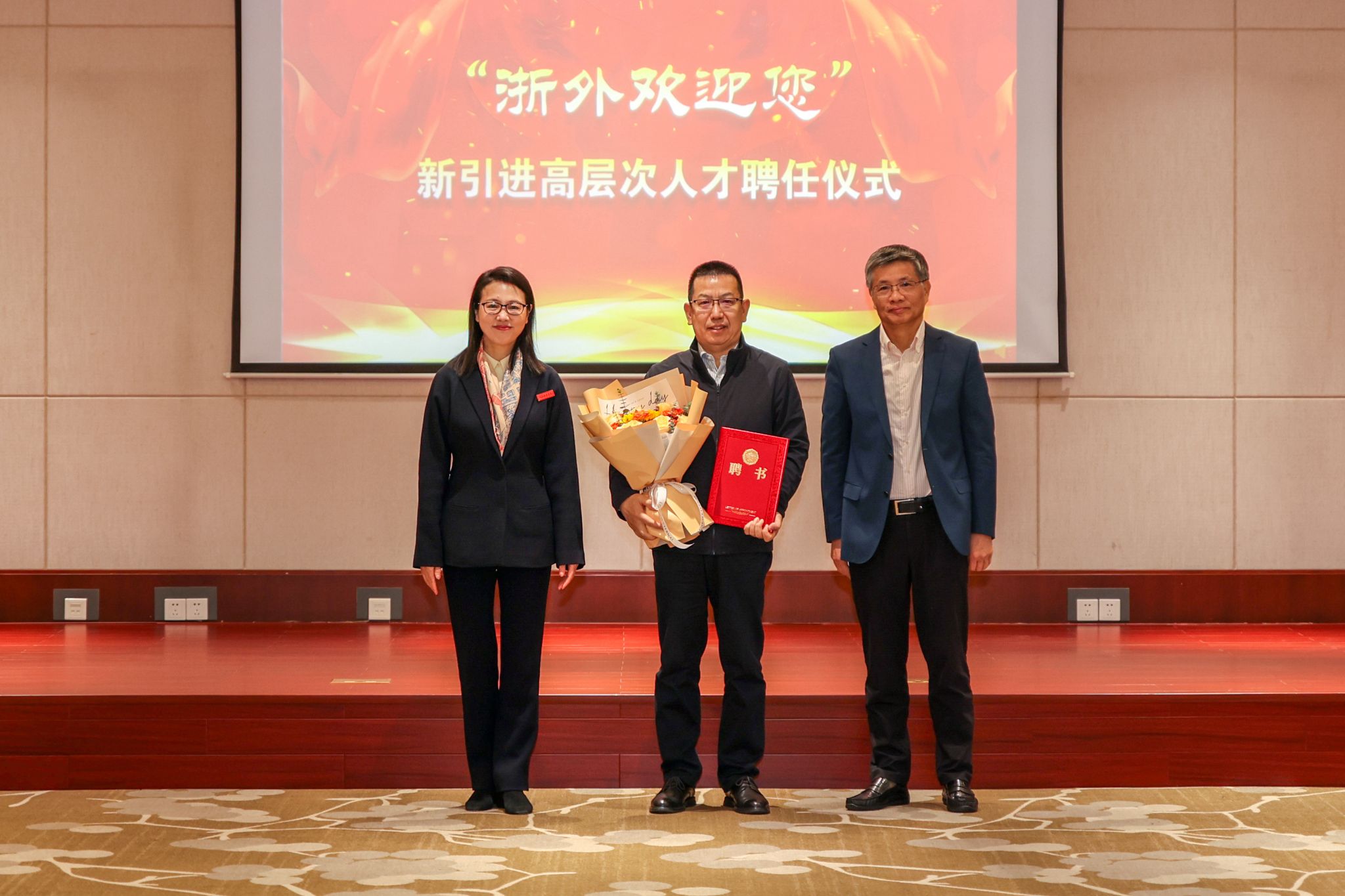 校党委书记宣勇,校长、党委副书记张环宙为西溪学者杰出人才石奇教授颁发聘书。