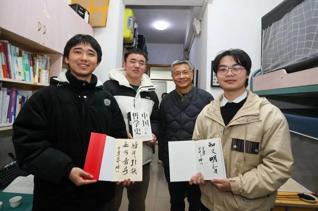 校党委书记宣勇走访“室美”寝室并向学生赠书。
