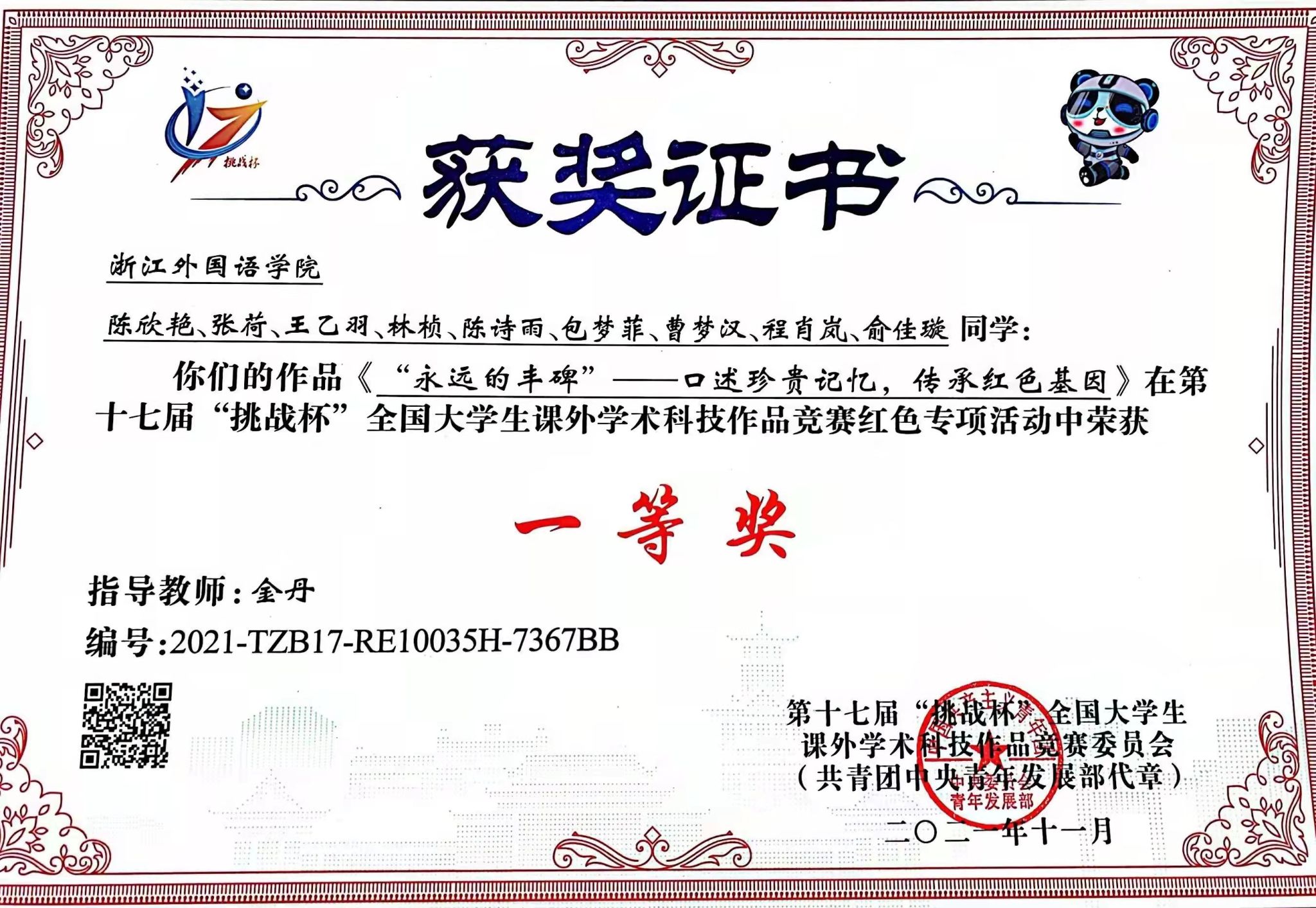 学院师生获“挑战杯”全国大学生课外学术科技作品竞赛红色专项国家级一等奖。