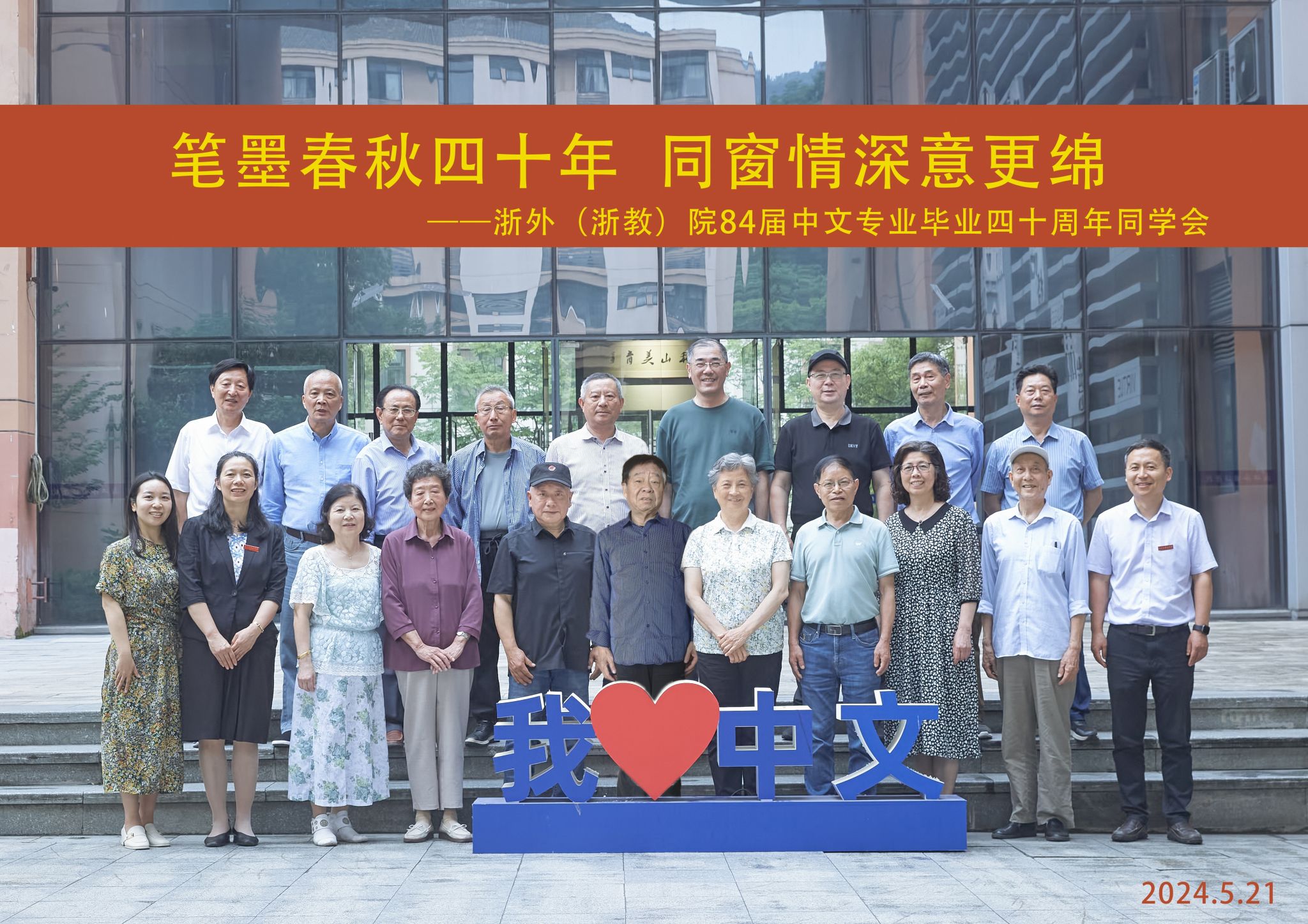 “四十年前,我们成为了同窗,见证了彼此的青春岁月……”近日,浙外的校史馆迎来了一批特殊的“客人”。1984届中文专业校友们回到母校,举行毕业40周年同学会,在复刻的文三校区浙江教育学院校门口留下了穿越时空的珍贵合影。当日正逢班里“全国优秀教师”李慧娟校友的八十岁生日,在场师生还为她送上了特别的生日祝福。