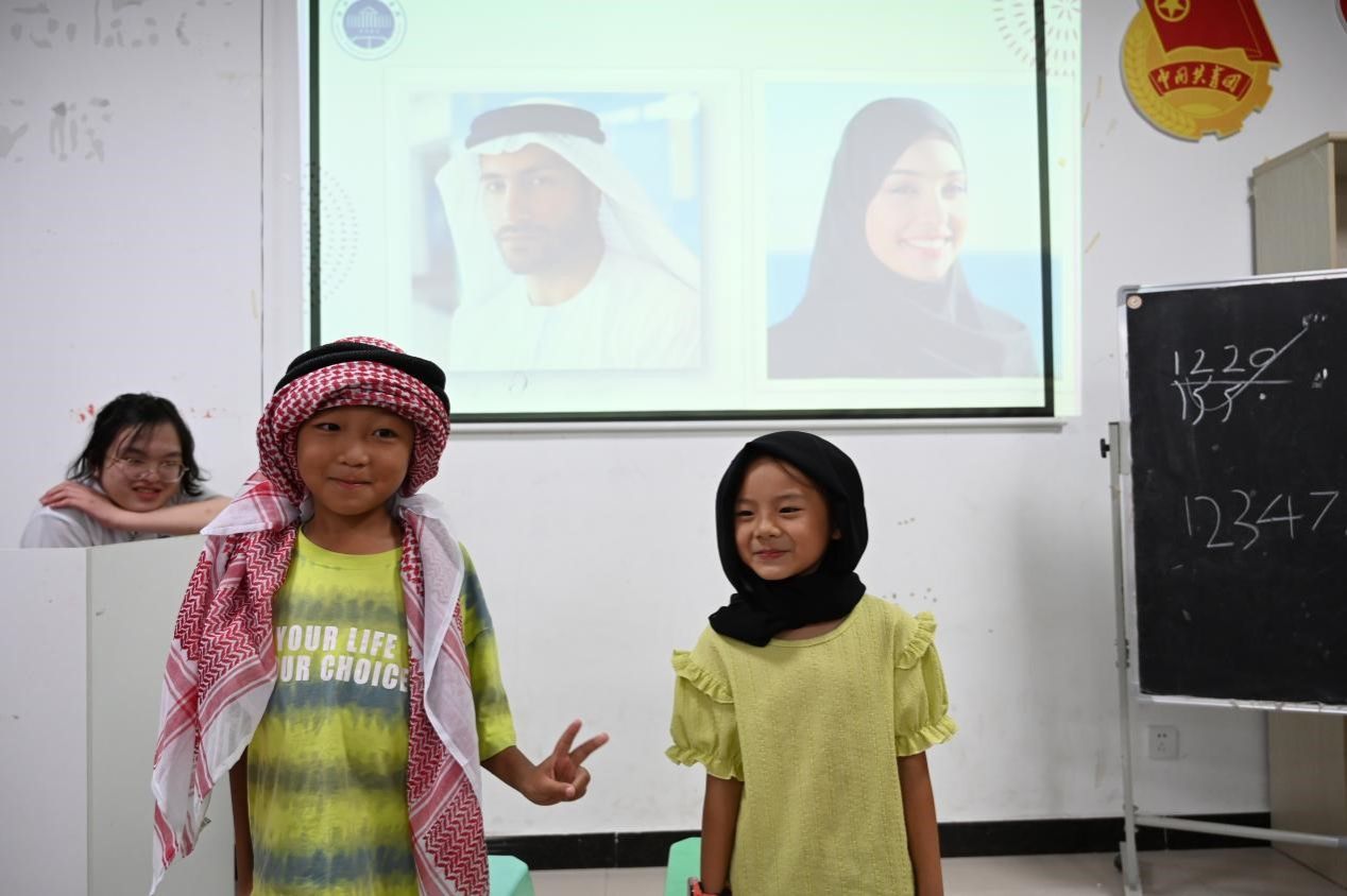 “你们知道投壶是什么吗?”“阿拉伯的头巾是怎么戴的?”“寿司是如何做成的?” “韩服有哪些穿戴细节?”在今年的暑期专属课堂上,团队带领孩子们沉浸式体验中国传统文化以及阿拉伯、日本、韩国等不同国家的特色文化。队员们带领孩子们试穿汉服、韩服、和服,戴上阿拉伯头巾,领略不同国家的服饰文化;一起动手制作原汁原味的日本寿司、韩式拌饭;品尝来自中东的椰枣,体验阿拉伯红茶与中国茶叶的不同……通过一堂堂精心准备的国际文化体验课程,在开拓孩子们视野的同时,也激起他们对未来更广阔世界探索的浓厚兴趣。
