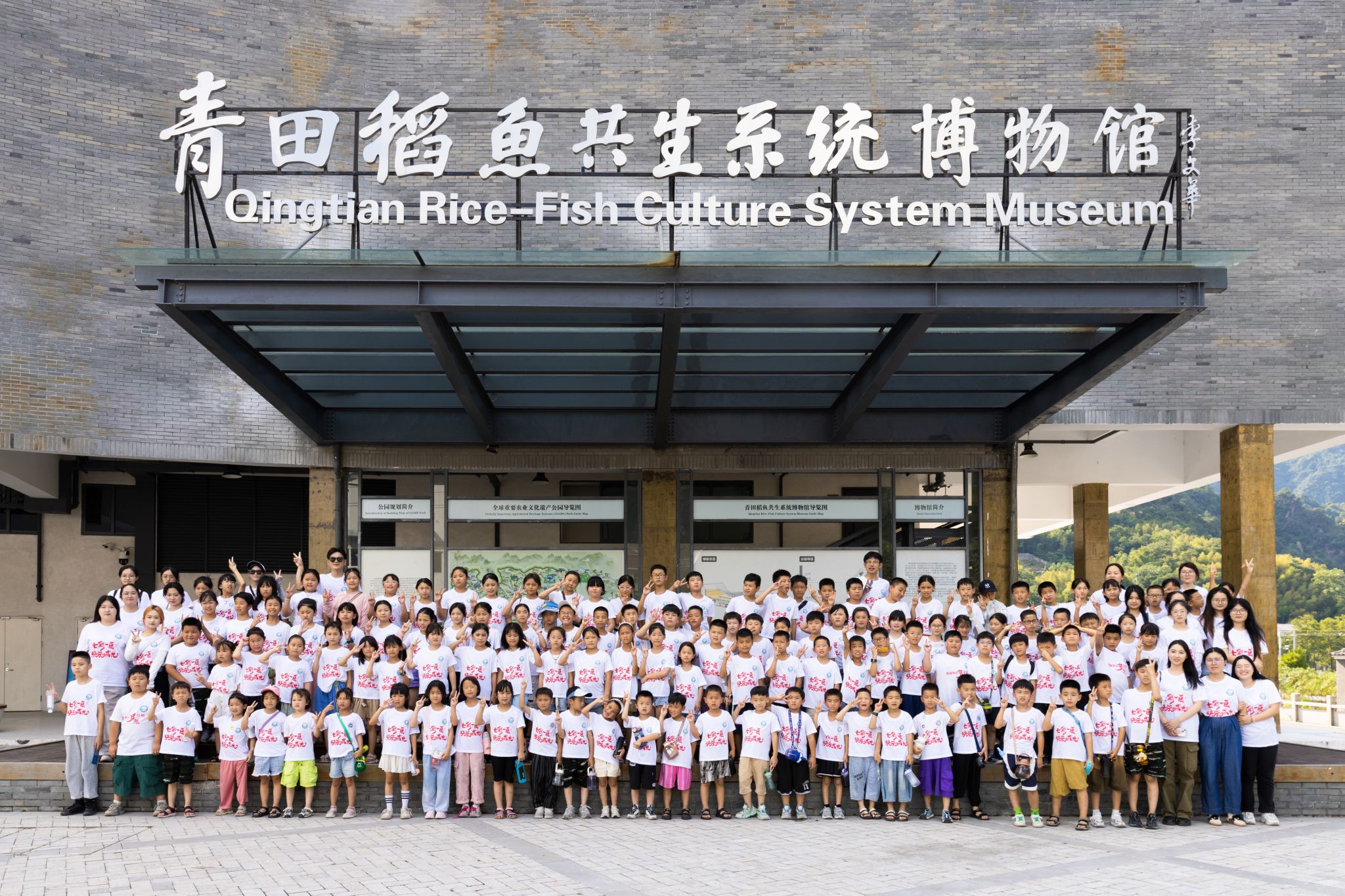 实践团队不仅发挥外语专业优势构建多语种课堂,还就地取材,打造特色课堂。团队将青田华侨“回国创业,吸纳就业,造福家乡”的故事有机融入课程,通过历史与现实的案例,为孩子们讲述了青田华侨艰苦创业、爱国爱乡、无私奉献的精神,鼓励孩子们学习“侨心向党”的精神,长大后积极报效祖国。团队还以方山乡五地垟的荷花为题,通过介绍荷花品种、特性、形态与文化品格,引导孩子们仔细观察并了解荷花特点,并描绘出心中理想的荷花景象,引导孩子们扣好人生第一粒扣子,做品格高尚之人。“稻田映绿水,鱼跃田园间”,在青田稻鱼共生系统博物馆,团队带领孩子们深入了解生态农业模式—稻鱼共生系统。通过介绍“稻鱼混养,利用稻田之水养鱼,鱼反哺稻田天然肥料”的共生概念,传递“绿色生态与可持续发展”理念。