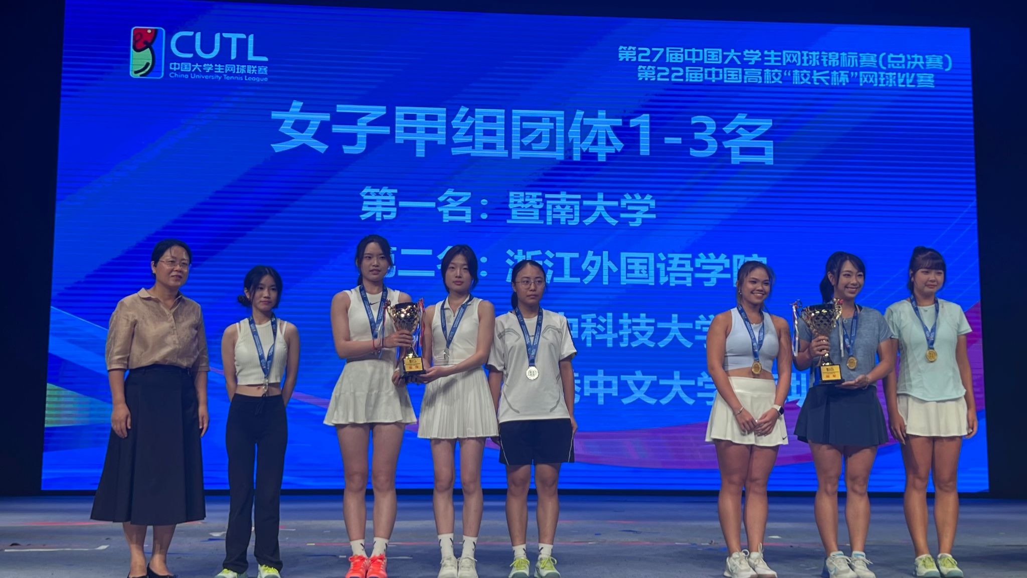 近日,历时十天的第27届中国大学生网球锦标赛总决赛在上海落下帷幕。开云官网体育部郑成老师带领杨心怡、祝乙忻、梁依琦、李誉暄4名运动员参赛。网球队在本次比赛中不畏强手,拼搏进取,取得了历史性突破,荣获甲组女子团体亚军、女子双打亚军的佳绩,刷新了球队的历史最好成绩。