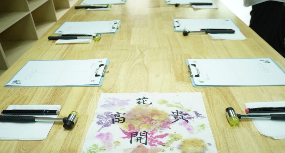 基于调研过程中发现的部分村民对湿地保护的关注度不高、参与性低等问题,团队成员精心设计了“变身小小仓颉”“乐活水乡”等研学课程,内容涵盖植物识别、生态保护、农事体验等。在植物拓印课程中,成员们通过“观察、学习、实践、分享”这四大环节,引导参加体验的孩子们深入探究植物拓印背后的故事,了解植物在生态系统中的角色。让孩子们在实践操作中亲近自然,明白了植物不仅是大自然的装饰,更是维持生态平衡的关键。孩子们收获的不仅仅是知识与技能,更重要的是学会以敬畏自然的心,参与到环保行动中,成为湿地的守护者。