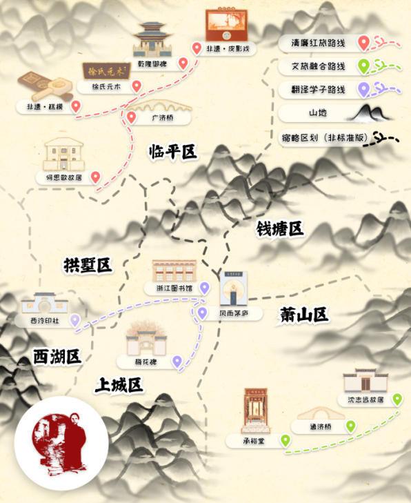 在与村委干部、村民及先贤后人等深入交流后,团队了解到红色翻译家们的个人事迹和宣传保护的现实需求。为传承弘扬翻译家精神、立体展现翻译家事迹,队员们精心设计了“杭城‘译’韵”红色旅游路线,根据场景切换需求,帮助游客体验属于自己的“译旅”,感受红色翻译家的独特魅力。