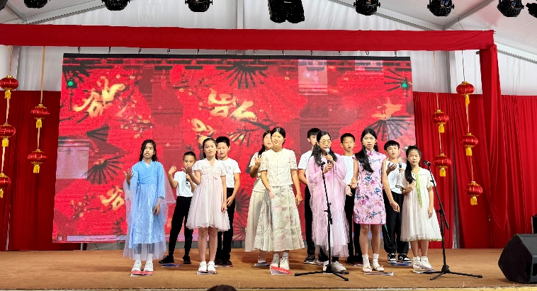 安巴孔院中外方院长、全体教师及志愿者受邀参加,并组织华人华侨中文班学生表演节目。为呈现精彩的节目效果,安巴孔院提前2个月,悉心组织学生准备节目。现场,华人华侨子弟以诗朗诵《妈妈的祖国》开场,并以《恭喜发财》的歌曲把表演活动的氛围推向高潮。现场观众齐声唱和、掌声不断。