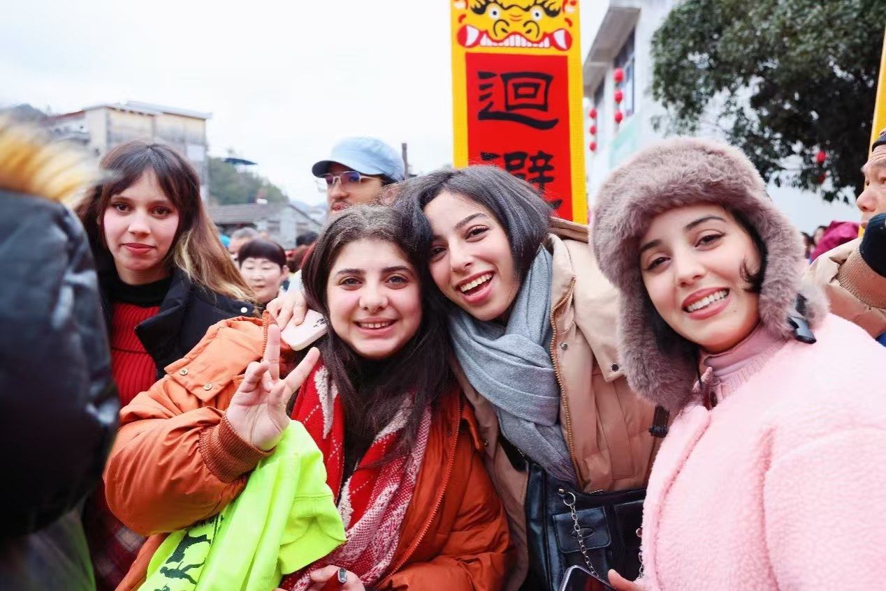 1月31日至2月1日,来自俄罗斯、乌兹别克斯坦、土耳其等10余个国家的近30名浙外留学生来到浙江磐安,开启了一场探美“念想双峰·羊家有喜”非遗羊味年之旅。