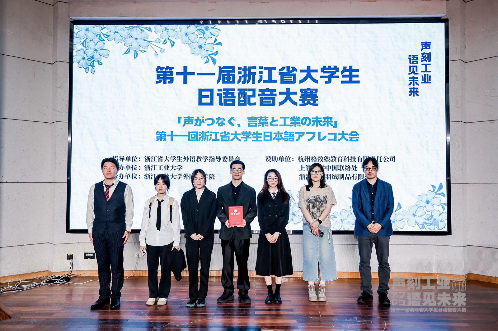 5月17日,第十一届浙江省大学生日语配音大赛决赛在杭举行。在许翠微老师和日语外教铃木穗高的指导下,日语专业廖志远、王佳硕、雷雨轩、赵楚睿、林依诺5位同学凭借对经典日剧《北国之恋》的配音演绎,以总成绩第二名的优秀表现斩获一等奖,展现了浙外学子扎实的语言功底。