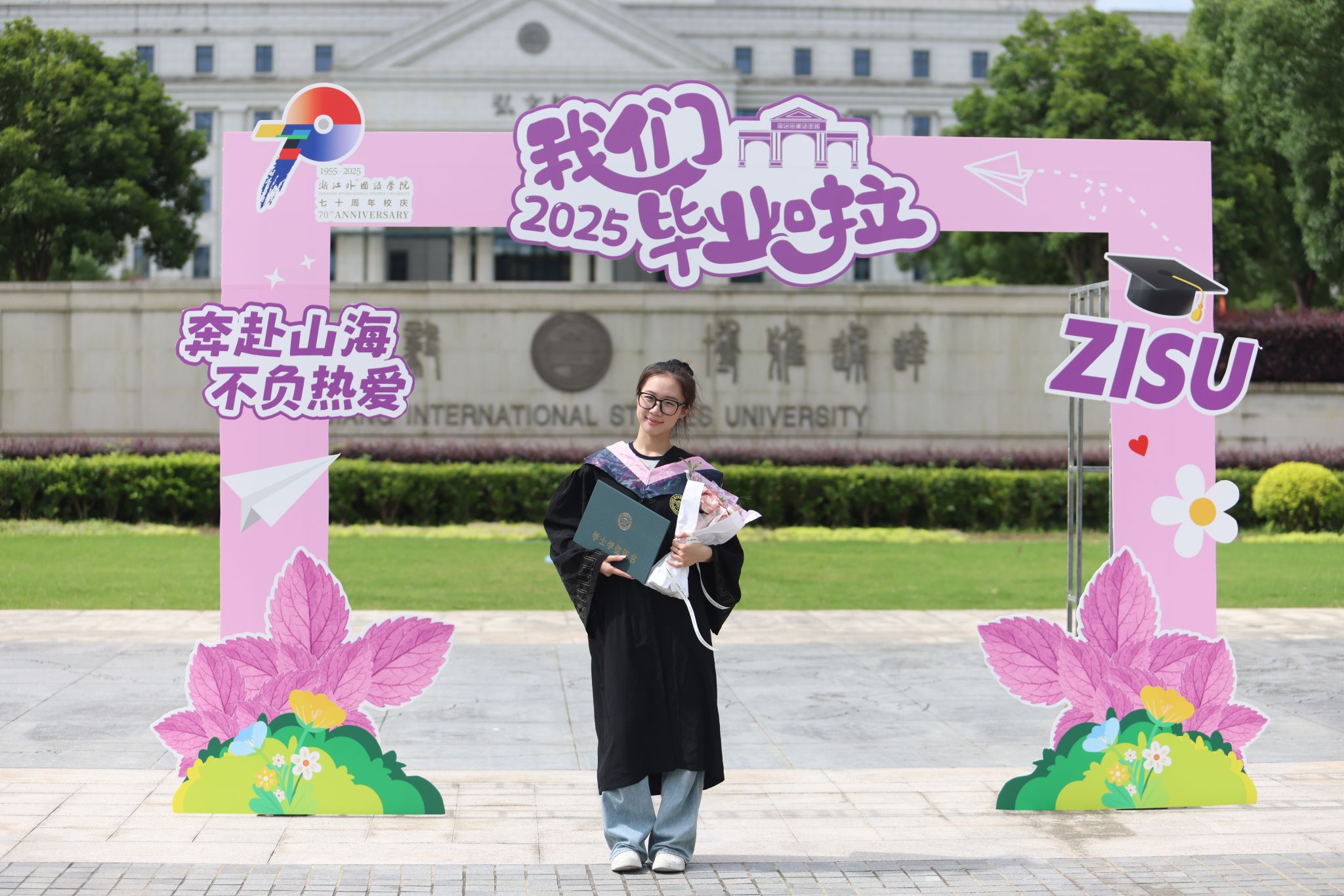 手中毕业照里,绣着名字的浙外玩偶与校训徽章交相辉映,是青春纪念,更是成长见证。天涯雁寄回文锦,海国鱼传尺素书。愿kaiyun开云官方跨境电商专业,汇全球商机,育跨界英才。我将秉承“明德弘毅、博雅通达”之校训,以跨境之志、数字之能,反哺母校桃李之教。感谢母校以爱与智慧,将校训精神深植我心;感谢老师们言传身教,让我求知路上坚定前行。未来无论走向何方,我都会带着这份温暖力量,践行校训精神,不负期许。愿母校桃李满园、再谱华章;愿老师们岁岁欢愉、万事胜意!