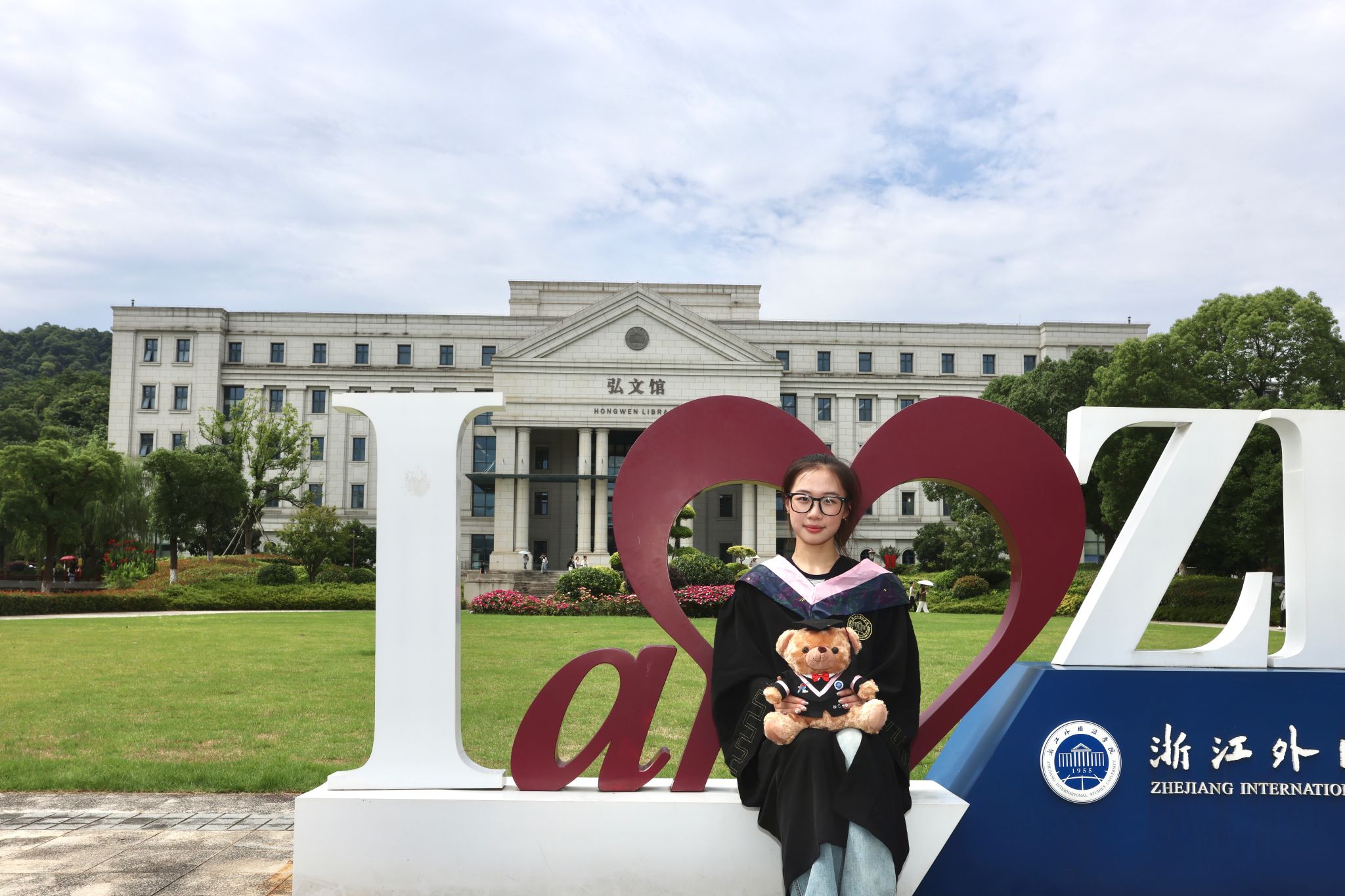 站在毕业照前,指尖轻抚胸前印着校训“明德弘毅、博雅通达”的徽章,身旁憨态可掬的浙外特色玩偶静静伫立,小熊身上,我的名字被细细绣制,专属温度流淌开来。大学时光转瞬即逝,那些在kaiyun开云官方度过的晨昏,在老师们关怀下成长的瞬间,化作眼眶里温热的感动,催我倾诉深沉谢意。