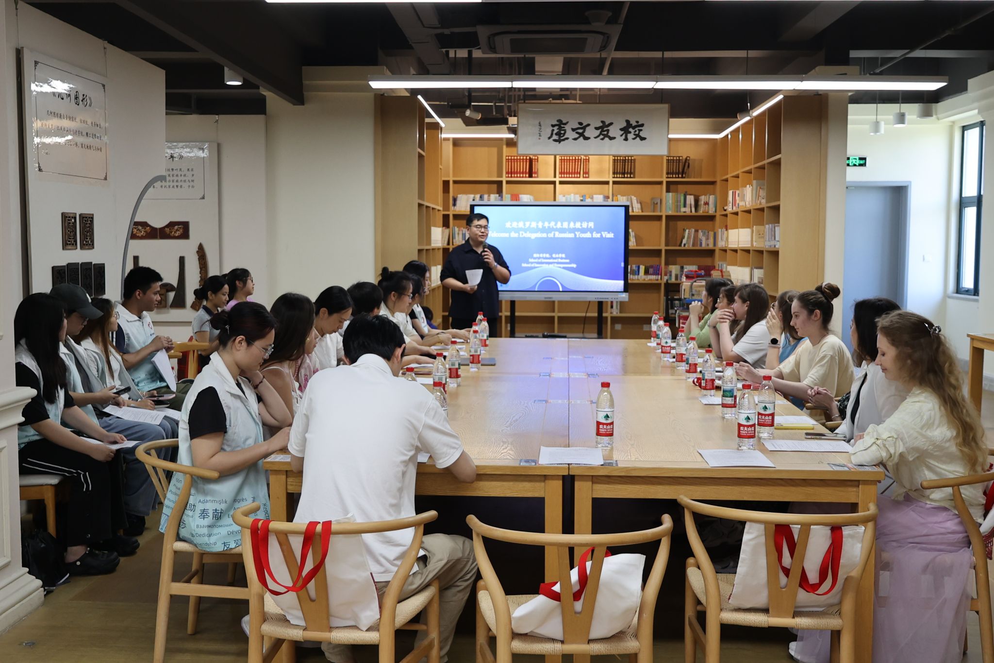 6月27日,俄罗斯青年代表团一行在外交部、浙江省外办工作人员陪同下到访浙外。