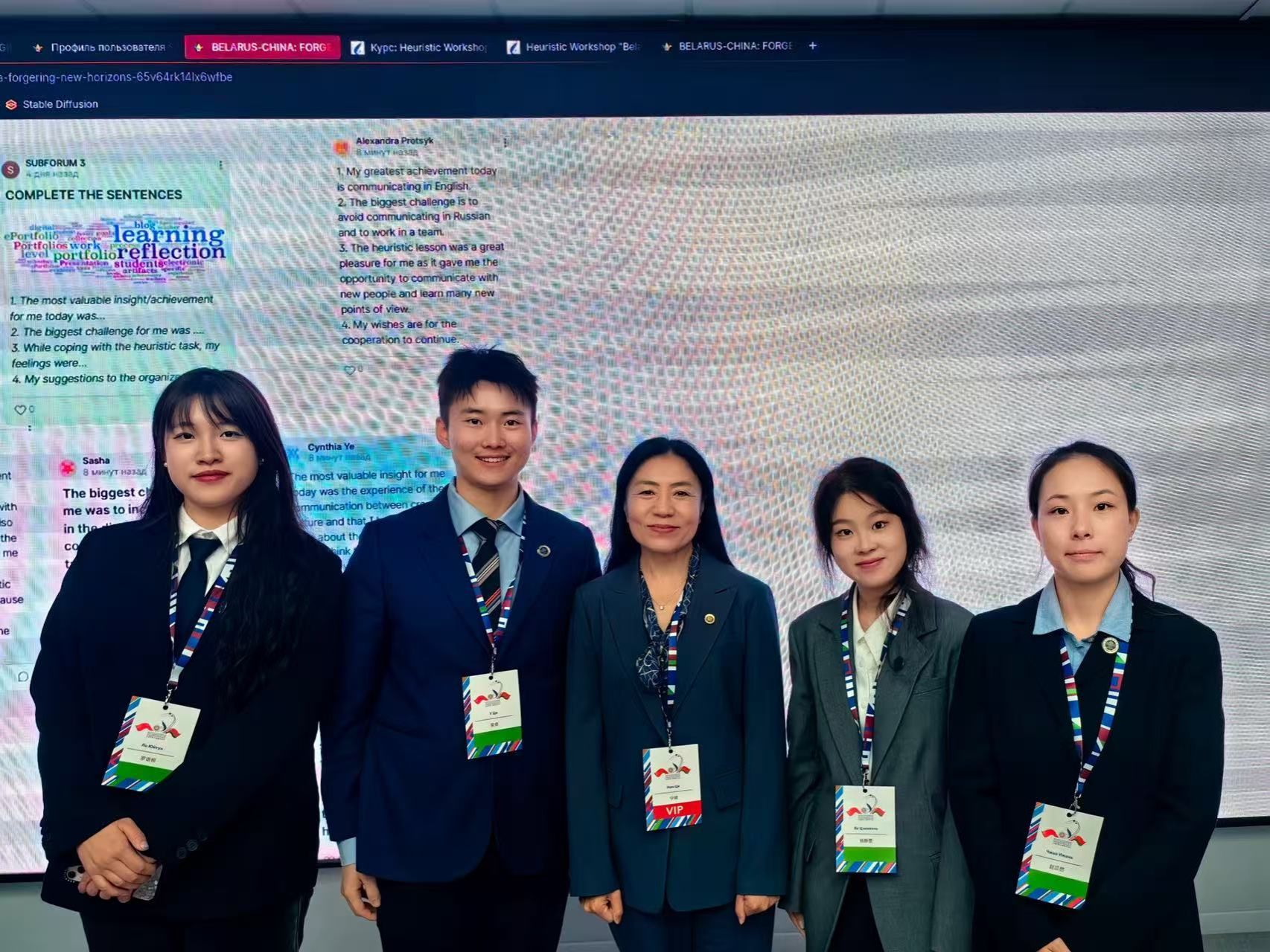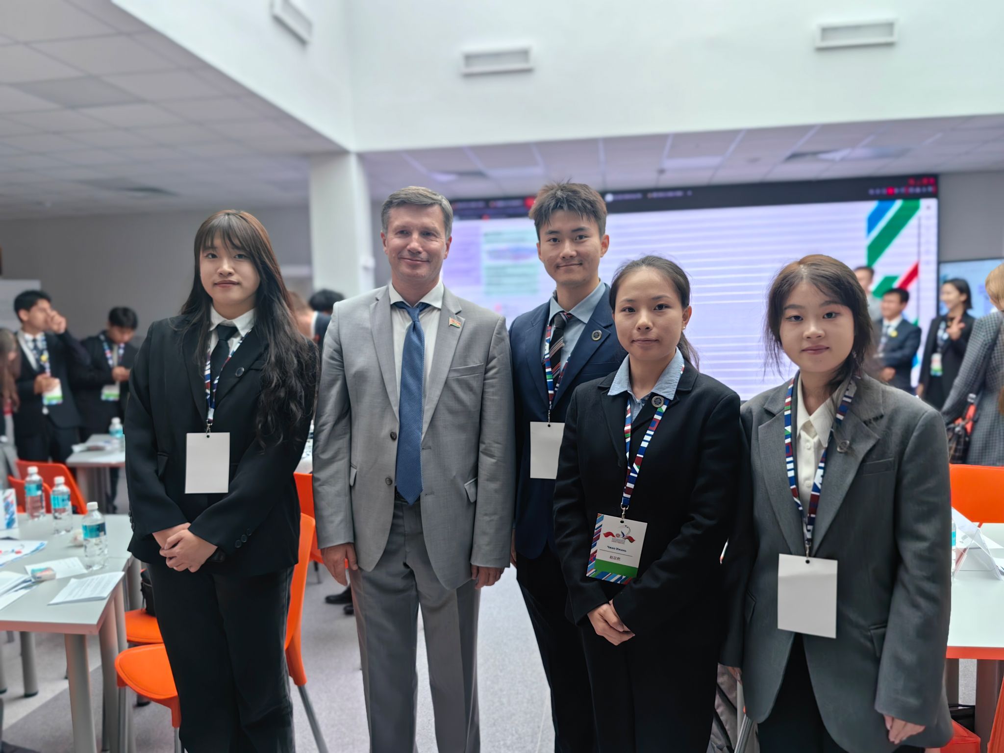 论坛开幕式上,白俄罗斯教育部第一副部长巴哈诺维奇·亚历山大·根纳季耶维奇、白俄罗斯外交部第一副部长卢卡舍维奇·谢尔盖·弗拉基米罗维奇、中国驻白俄罗斯特命全权大使张汶川、白俄罗斯国立大学校长卡罗尔·安德烈·德米特里耶维奇、北京大学副校长宁琦等嘉宾先后致辞。会议期间,白俄罗斯通讯和信息化部经济局局长Veranika KUSHMAR专程看望浙外学子。她回顾了今年5月在北京参加商务部研修项目期间,浙外实习生给予的细致、周到服务,详细倾听了学生参加中白青年创新论坛的收获与感悟,鼓励学生勇敢走出舒适圈,做中白两国文明互鉴的青年使者。