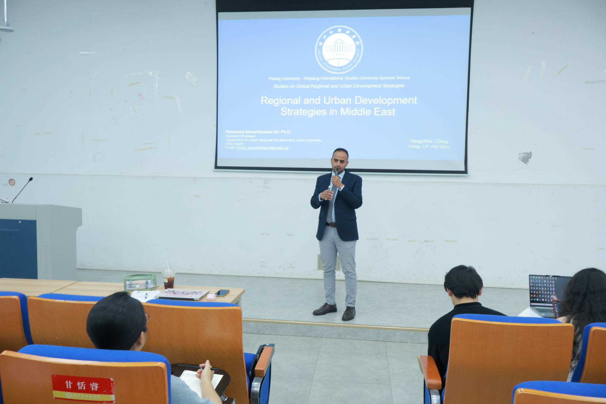 埃及开罗大学Mohamed Abouelhassan Ali博士介绍了埃及和中东的区域与城市发展战略。他展示了埃及在平衡历史保护与现代发展方面的创新实践,探讨了中东国家如何在气候变化和水资源短缺的压力下,积极探索从能源依赖型向知识型经济的转型路径。