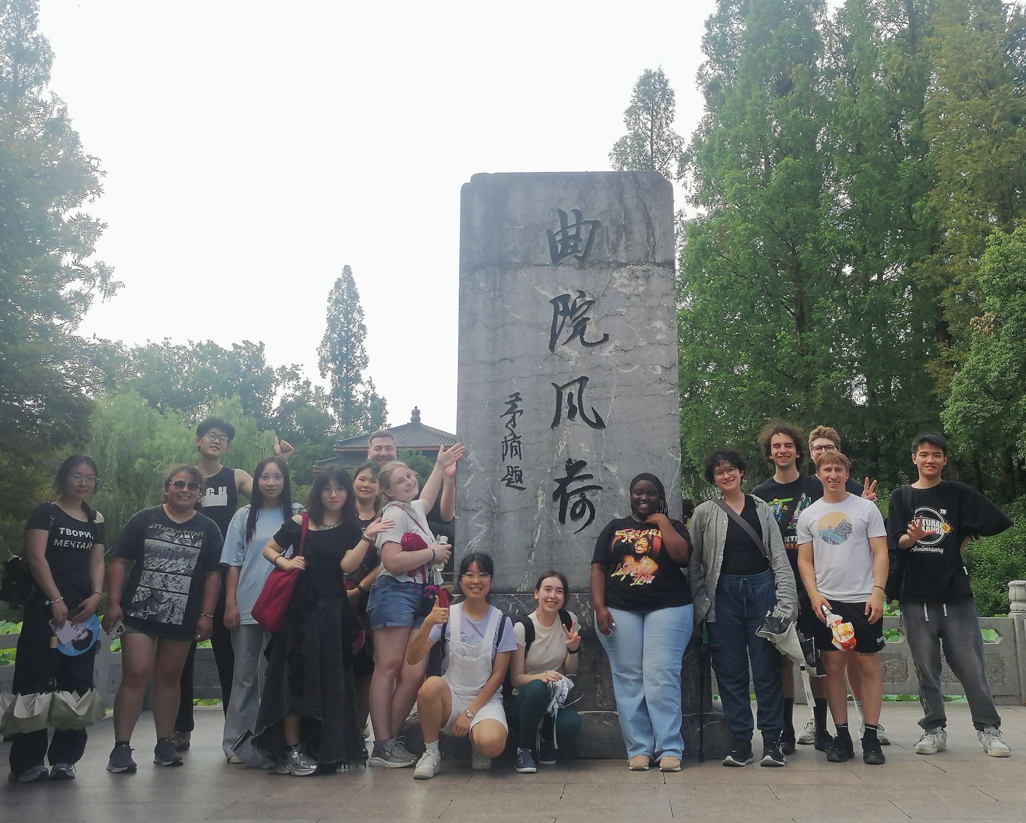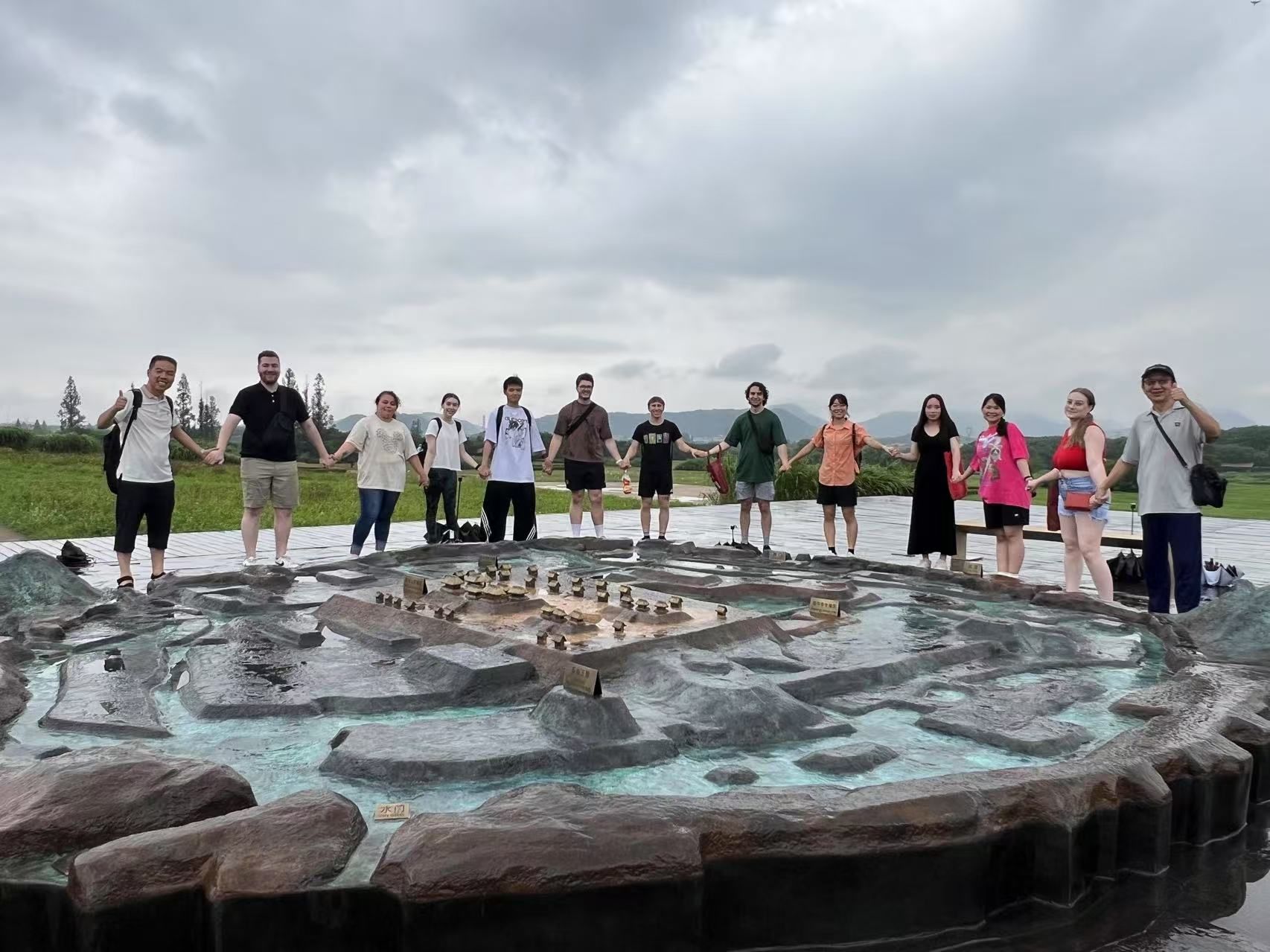 项目期间,来自美国西密歇根大学的学生与浙外学子共同参与文化课程学习,围绕两国文化开展多维度研学。在胡庆余堂的百年药香中探寻中医药文化,行走南宋御街触摸古都历史脉络,品味龙井茶的悠长韵味,追溯江南越剧的声腔脉络,破译千年良渚文明的艺术密码,体悟会稽山兰亭的书圣遗风,领略黄酒酿造的传统智慧……短短数日,中美学生行走江南,足迹贯穿了浙江的历史与未来。“西湖景色超乎想象,未来科技城也让人大开眼界。这趟旅程我学习了中国的语言文化,我对在中国的旅行充满期待。”美国学生艾米丽赞叹道。双方还就家庭、婚姻、医疗、教育制度等方面进行了深入探讨,在增进对彼此文化理解的同时,也深化了情感友谊。23级英语专业的姜姗杉对此深有感悟:“语言作为桥梁连接了太平洋两端的心灵,在中美文化的碰撞交融中,我感受到青年人对美好生活追求的共通心声。”