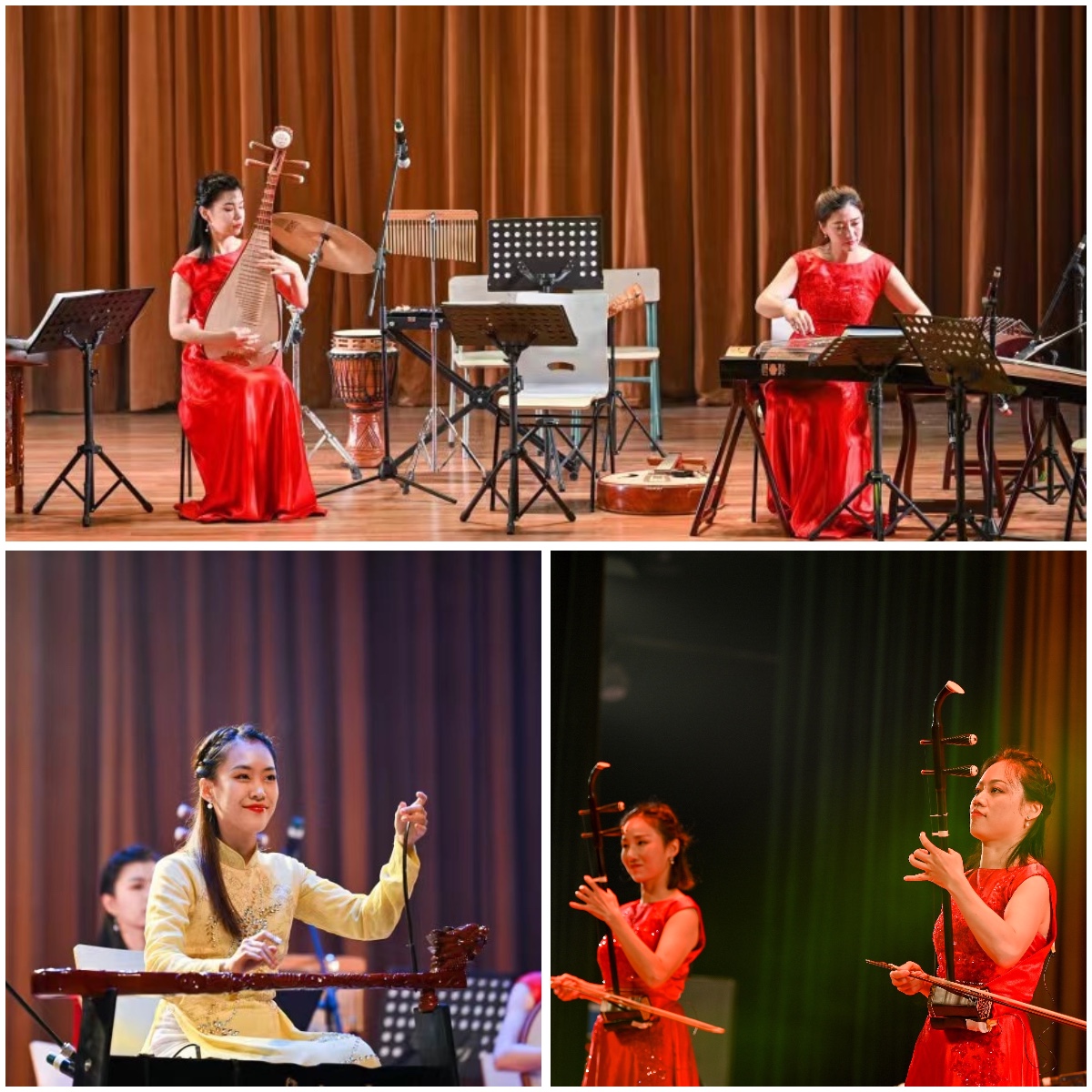 演出节目形式多为重奏,《拔根芦柴花》《绣金匾》《边疆的泉水清又纯》《赛马》《芭岛情话》《春江花月夜》《草原女民兵》《青城山下》《大鱼》《雪落下的声音》《花儿为什么这样红》等经典悠扬的曲乐让在场的师生陶醉。