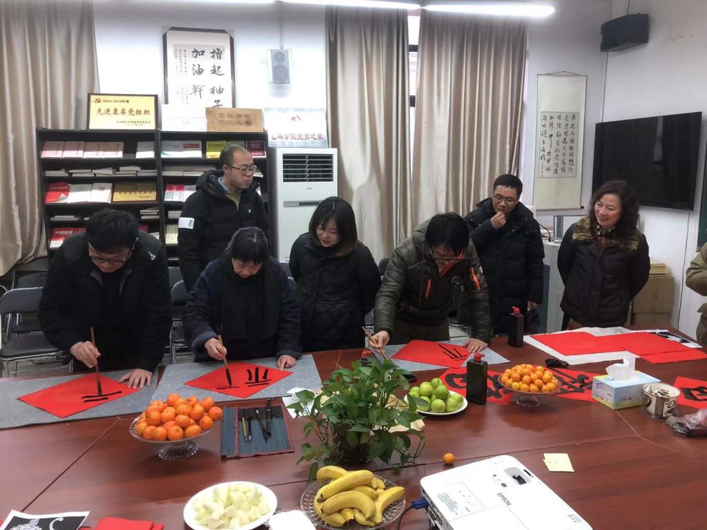 现场,美术系吴大红、王恺中、颜子茗老师为学院的教职工书写春联和福字。红彤彤的纸上,书写着苍劲有力的祝“福”,道出了广大师生员工对美好生活的向往,对学校发展万象更新、蒸蒸日上美好愿景的期盼。一幅幅春联映红了笑脸,一个个“福”字温暖着人心 。