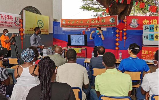 中国中医文化历史悠久、蕴藏丰富,是中国传统文化的重要组成部分。赤几孔院以“中文+中医”为切入点,多次在马拉博、巴塔地区举办中医文化推广活动,吸引了众多民众参与,为中赤几人民提供了文化互鉴的交流机会。