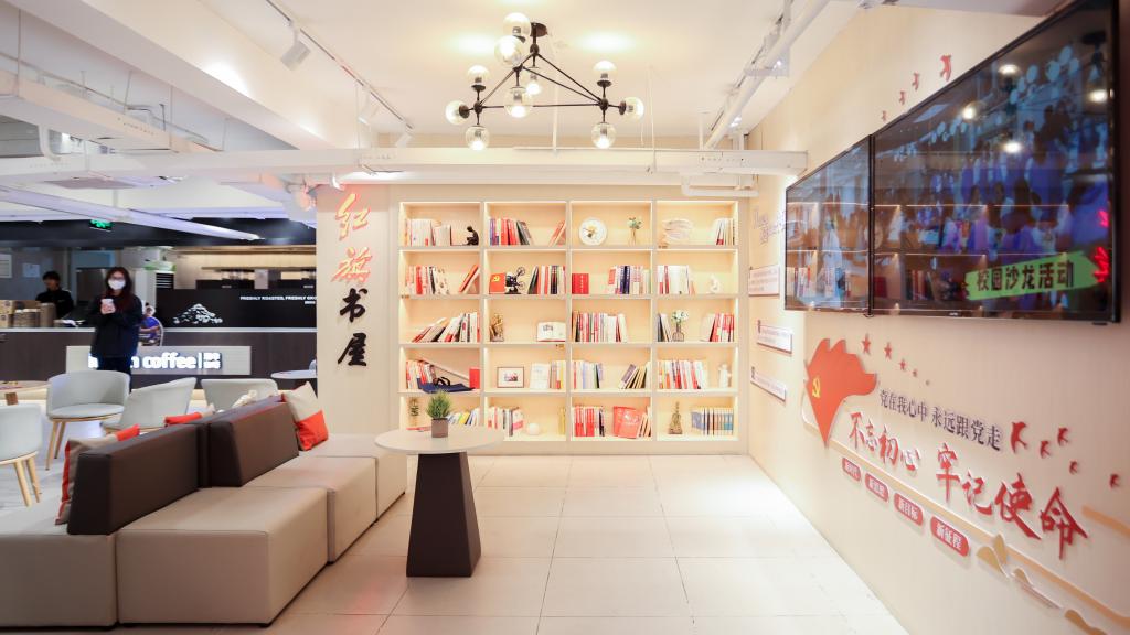 位于雅致苑的生活综合体,集休闲购物、阅读交流与校园文化互促融合为一体。在这些生活化的场景中,不仅可以一站式解决日常生活需求,还可以在休息区小憩,品尝一杯网红咖啡,伴随红旗书屋的淡淡书香,交流课业进展,探讨学术思路,讨论活动方案,碰撞出新的灵感与火花。小小咖啡遇见大大世界。