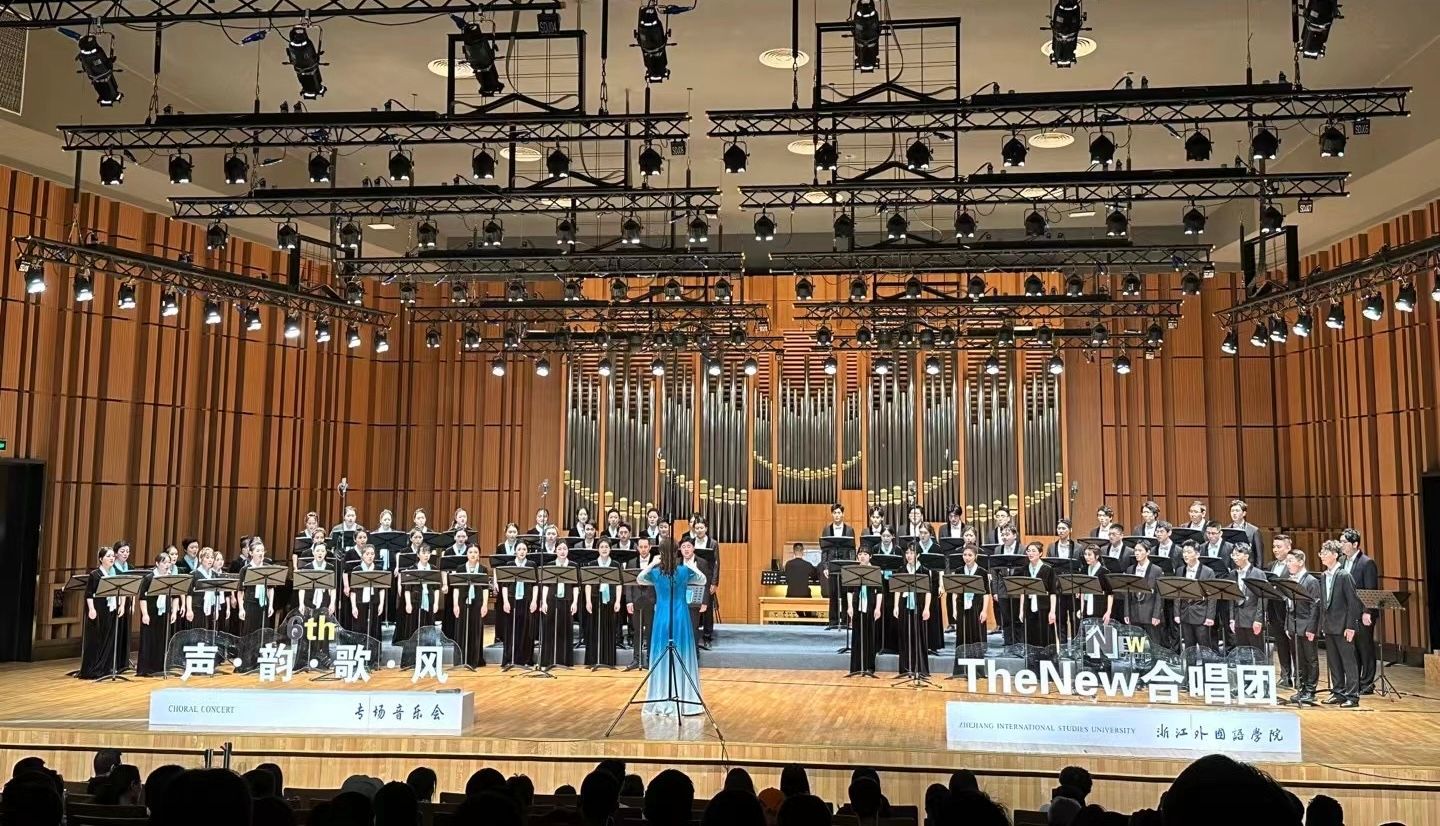 浙外“TheNew”“火”了。合唱团又先后参加了首届中国合唱指挥大会优秀合唱团展演音乐会、浙江省庆祝中华人民共和国成立70周年大型音乐舞蹈史诗晚会,受邀献演天籁中国2019国际青少年施光南声乐艺术季合唱音乐会、2023年“中国城市合唱汇演”闭幕式音乐会专场演出、世界青年科学家峰会开幕式主题曲演唱,以及在新西兰奥克兰市举办的“Echoes of Culture”音乐会等。合唱团以其独特的魅力吸引了越来越多业界专家的赞赏和“New粉”的追随。