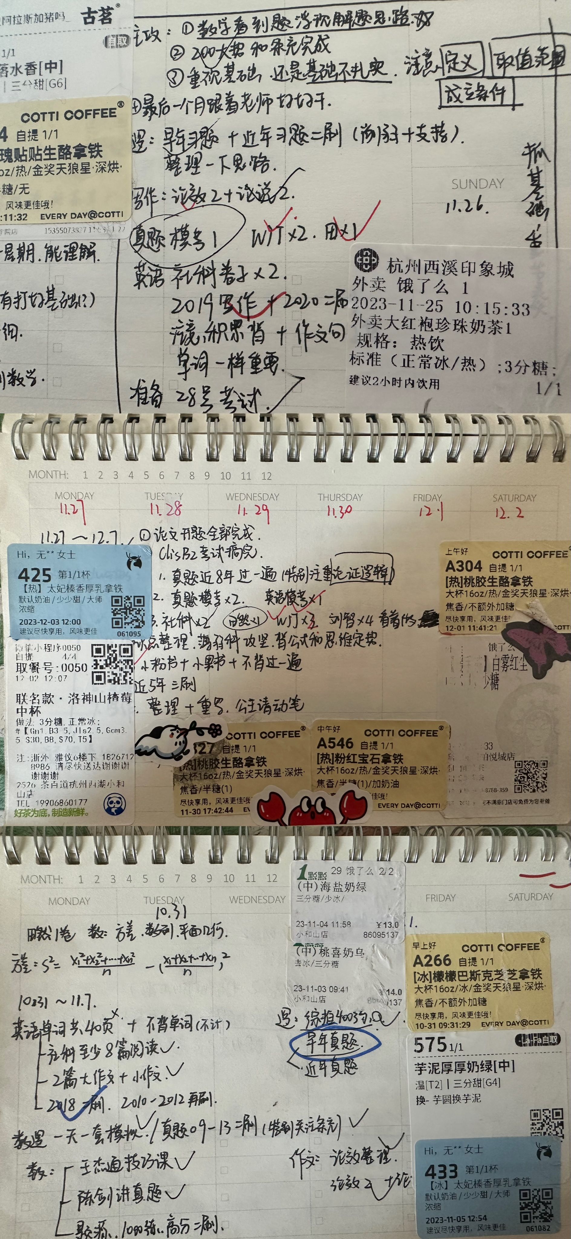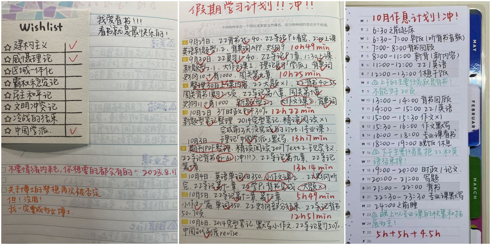因为两门专业课都是全英文考试,在备考前期,我将英语作为自己复习的重要部分。为了有更强的自驱力,我会给自己安排略微超过自身复习强度的复习任务,但只要求完成其中的80%,既有目标感又不会太有难度的复习安排,也让我能够一直坚持到最后。为了在研究生复试上拿到理想成绩,从大三下学期开始,我就有意识地把口语表达练习作为重中之重,每天坚持20分钟时间专门练习口语表达,而这也为我顺利通过复试奠定了最关键的基础。