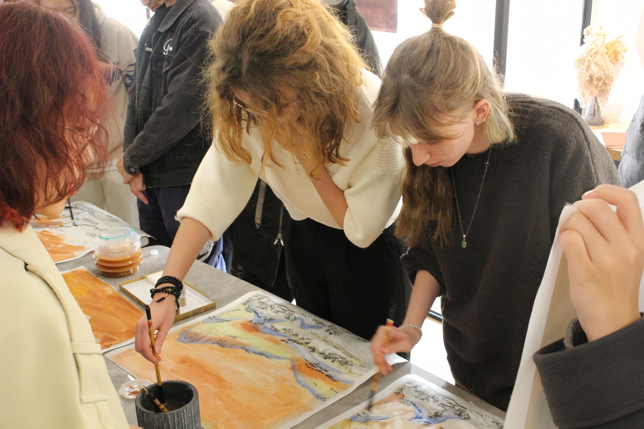 宣讲团成立1个月后,面向校内中外学生首次亮相宣讲。宣讲员们详细介绍了李嵩的《货郎图》,在互动中探讨并揭示画中货郎的多重“秘密”身份。宣讲员们还通过对比分析中国山水画与西方风景画的风格和表现手法,让留学生动手实践复现《千里江山图》的色彩魅力,向留学生展现了中国历代绘画大系的独特魅力。俄罗斯留学生葛瑞丹说:“我们很高兴有这样的机会深入了解和接触中国画和中国传统文化,这对我们来说真是一次梦想成真的经历!”