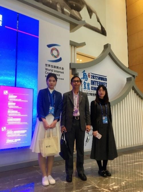 张梓堃(右一)与嘉宾在2022年世界互联网大会乌镇峰会。