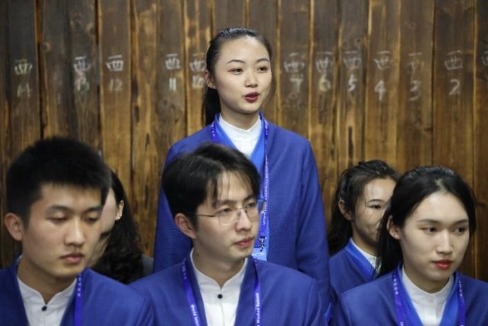 “太学是中国古代的国立最高学府,始于西周,汉以后是传授儒家经典、培养统治人才的场所。”当匈牙利驻沪总领事博岚先生对昭明书舍牌匾上的“太学”二字感兴趣时,20级土耳其语1班张梓堃详细地向他介绍其中的历史。“中华文化博大精深,我对此很感兴趣。虽然已经来中国5年,但是仍有许多地方需要学习。”博岚先生一边翻看昭明书舍摆放的书籍,一边与张梓堃聊起中国文化。“博岚先生对中国文化的兴趣是我做好嘉宾服务的动力!”为帮助嘉宾更好地了解中国文化,张梓堃经常翻阅资料至深夜,她认为,这既是对自身专业能力的检验,更是传播中华优秀传统文化的一个绝佳机会。