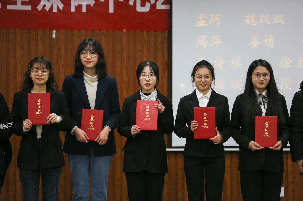 钱建盼(左三)参加校全媒体中心表彰大会。