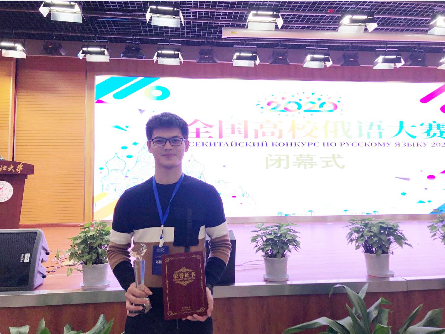 (2020年,赵阳洋代表浙外在黑龙江大学参加全国高校俄语大赛)