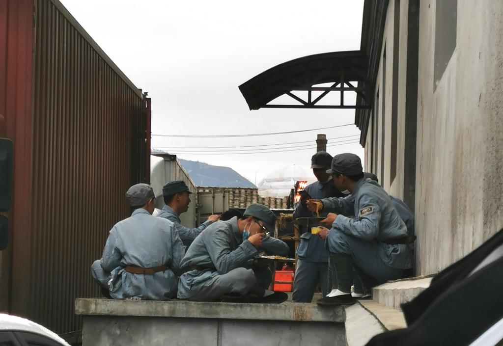 拍摄结束后,大家捧着剧组的盒饭,雨天幕地下席地而坐,脸上却都洋溢着欣慰的笑容。19级音乐表演班冯子函同学对“青年学子学青年习近平”学习教育中学到的“吃苦耐劳”精神有了更深刻的实践与体会:“身着八路军战士的服装,我仿佛有一瞬间感觉自己真的身处那个年代,时间永流逝,信念未更改!青年习近平七年上山下乡的艰苦生活对他锻炼很大,同他一样,我们青年也一定要多经历一点摔打、挫折、考验,有利于走好一生的路。”