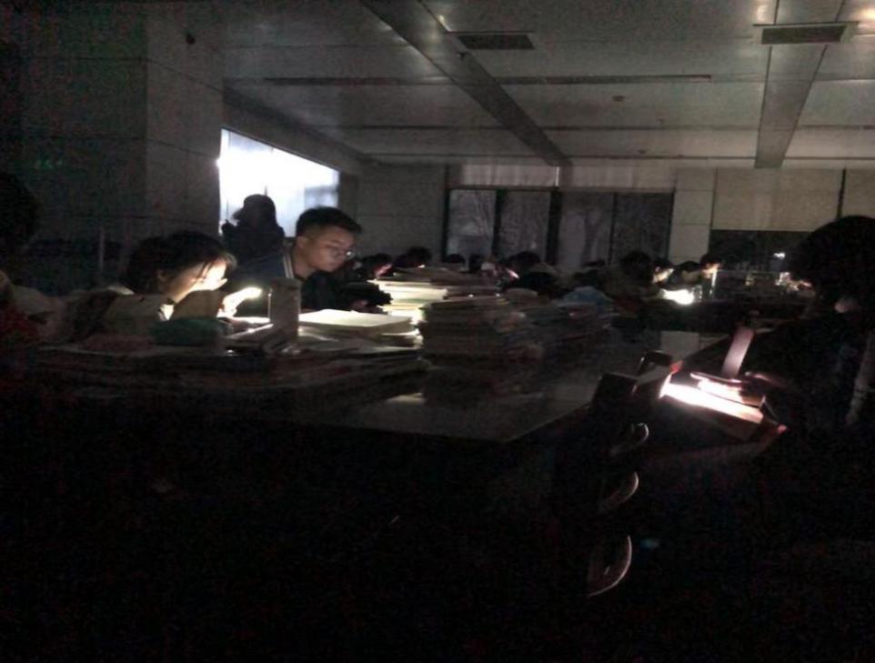(图书馆停电后仍在专注学习的同学们)
