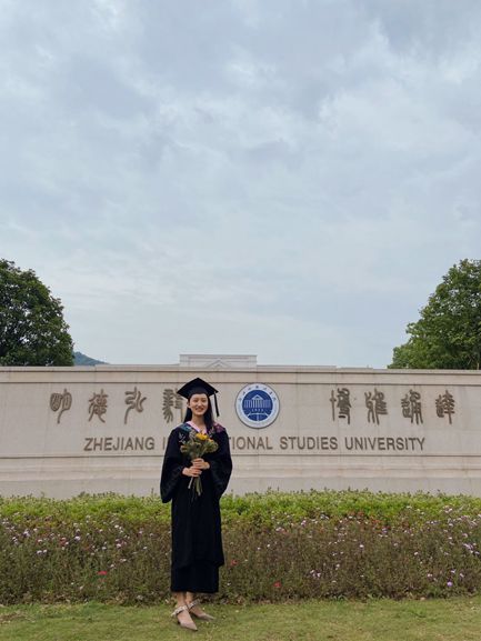 身着学士服,手捧鲜花,“咔”!镜头记录下满脸微笑的顾家瑜,正在和母校合影。这个毕业季,于她而言,很不一般,因为和离别相伴的还有考研成功的喜悦,她即将从浙外启航,继续追逐自己的梦想。