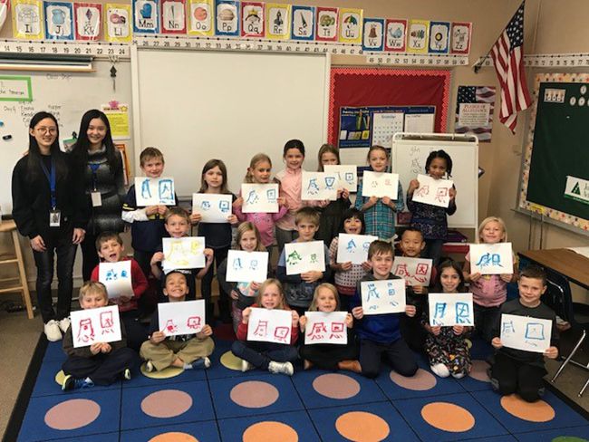 顾家瑜(左一)在美国E.P Rock Elementary School实习