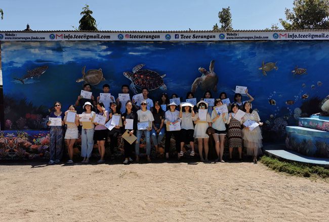 2019年8月,陈俞亦(一排右三)参加巴厘岛海龟保护计划做国际义工