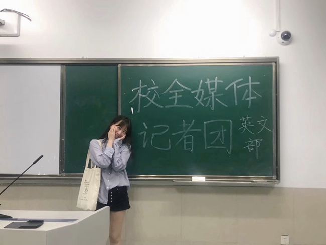 从校全媒体中心记者团到申请新闻传播学专业,是满腔的热爱与坚持。怀揣着青春的热血与理想,陈俞亦于2016年踏入了校全媒体中心之门,她从开始负责采访编写的干事,一步步成长为负责团队建设的记者团英文部部长。在这近三年时间里,她最大的收获就是自身综合素质、专业能力得到了极大的锻炼。从采访到写稿,从改稿再到成稿,过程虽烦琐,她却很享受,在对稿件的反复修改中,在一次次的采写任务中,打下了扎实的专业基本功,为日后继续深造奠定了基础。