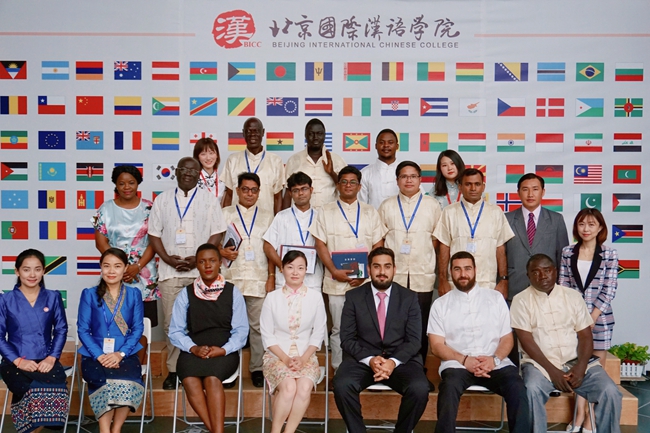 2019年8月,陈俞亦(三排左一)在北京国际汉语研修学院做翻译实习生