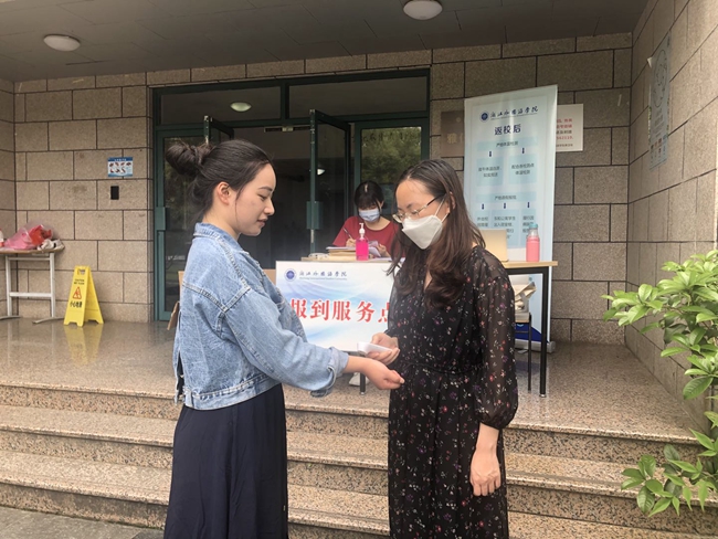 虽然线上教学工作繁忙,但来校参加志愿服务,她毫不犹豫,“疫情打乱了正常的教学秩序,一方面我们要做好线上教学,停课不停学。另一方面,最近学生返校,行政老师、辅导员们做了大量工作、付出了很多努力。我们作为班主任,也应当为学生带去温暖,为学校抗击疫情、顺利复学出一份力。”活泼的胡老师难得严肃,“而且可以顺便了解学生们毕业论文、就业等情况,是个很好的贴近学生生活的机会。”