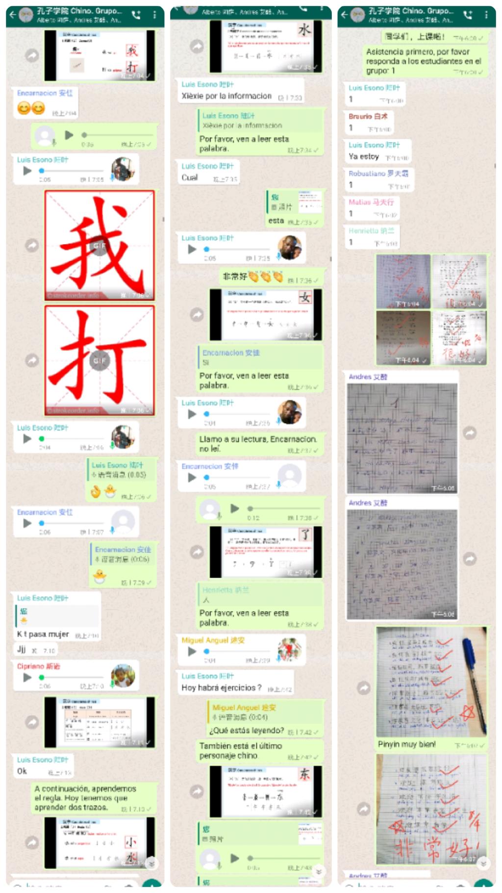 一大早,学生萨瓦多打来电话,说他拍了一段视频发在当地社交软件WhatsApp上,让我看看。原来是一段功夫课的视频。他是孔子学院功夫俱乐部的优秀学员,中文成绩一直不错,去年刚从天津霍元甲武术学校培训归来,这学期孔院安排他担任新学员的教练。学校停课导致学员们无法集中上课,于是萨瓦多邀约学员每天到他家小区,不折不扣地进行一对一教学。视频中学员有板有眼的一招一式,真看不出是第一次学习中国功夫的新成员。