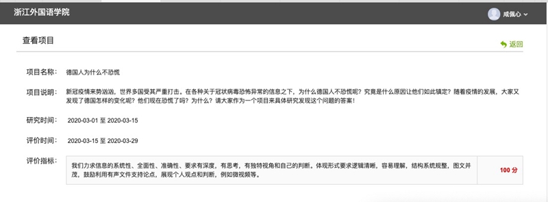 德国人面对疫情为什么不恐慌?这是西语学院德语专业咸佩心老师《德国概况》课程中“德国医疗保障体系”这一知识点的一个问题。咸老师聚焦德国当下疫情动态,采用PBL项目式教学法,围绕“德国人如何看待疫情”这一主题,指导学生搜集有关德国抗疫策略、社会体制、医疗系统、社保体系以及民众饮食卫生习惯等方面的阅读资料,引导学生围绕项目主题进行课上研学分享。