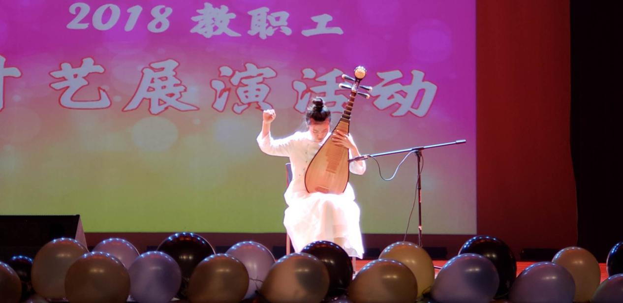 在来到浙外以前,高老师就通过实践教学积累了一些工作经验,2018年仲夏,她正式开启了她在浙外的教学生涯。她很快进入状态,先后开设了琵琶、中阮等中国民族器乐的公共选修课程。她带领学生跨越空间和时间,在转轴拨弦中感知秦汉明月、唐宋风雅;她引导学生登上舞台,演绎出中国传统文化的古典韵味。她让学生们在学会欣赏、演奏民族乐器的同时,为浙外增添了一抹浓浓的民族艺术风情。