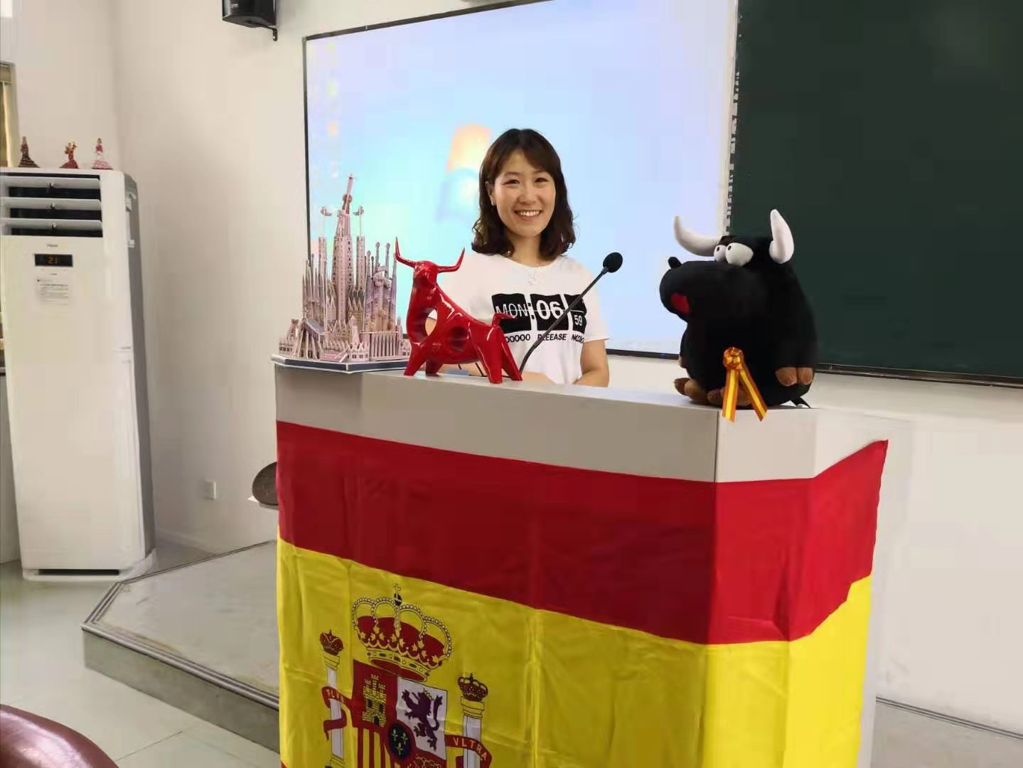 甘老师在西班牙求学近十年。多年的异域文化滋养,让她成为了“长着中国面孔的西班牙人”,而这种印记也投射到了她的课堂教学之中。从餐饮到经济、从风景的美好到做人的智慧,甘老师在课堂上为同学们生动地描述西班牙的风土人情,让学生们仿佛身临其境。当提到西班牙的餐饮文化,甘老师会特地带来当地的餐具,为学生们展示,期间还分享了自己在西班牙求学和生活经历。在甘老师绘声绘色的讲述中,立体的西班牙仿佛就在学生眼前。