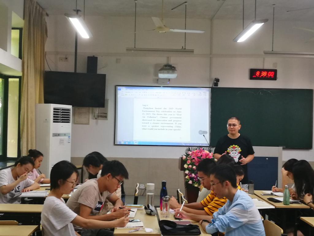 “使同学们思维清楚,语言表达合适,用语言表达去倒逼他们自己去进行思考”这是楼老师教学遵循的一个理念。他希望初次接触演讲的同学们可以克服心理障碍,敢于在同学面前去讲,把它当作一种兴趣,激发出自己的说话欲望,让脑子转得更快,说话能力更强。为了达到这种效果,根据英语演讲特点和学生学习特点,楼老师采用了梯队性英语集训方法:大一的队员训练语音以及语言能力;大二的队员进行逻辑以及问答技巧训练;大三的队员学习英语辩论技巧这种层层相扣的教学方法,深受学生喜爱。