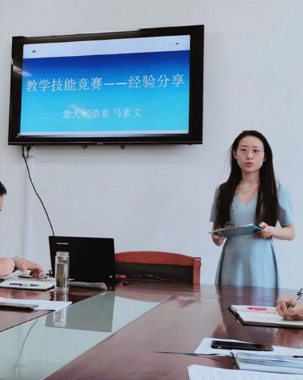 “Adele老师是一个十分热爱自己教学事业的人。”这是原西语学院2017级意大利语专业学生马圣卓对她的印象。记者第一次与马老师接触,就感受到了她对学生、对意大利语、对教育事业的热爱。当听到记者的名字时,她告诉记者,“你的英文名也是一个很美的意大利语名字呢”。她比较了中国和意大利取名习惯的异同,巧妙地拓展讲了意大利的传统文化,令人在舒心的氛围中学到了知识。“在教学这件事上,我最想要的是对得起自己的良心。”面对学生“专业、大方、人美心善、热爱生活”的赞美,马老师真诚地说道,很感谢学生们对自己的支持和肯定,这激励着她更坚定更自信地投入到教学事业中去。
