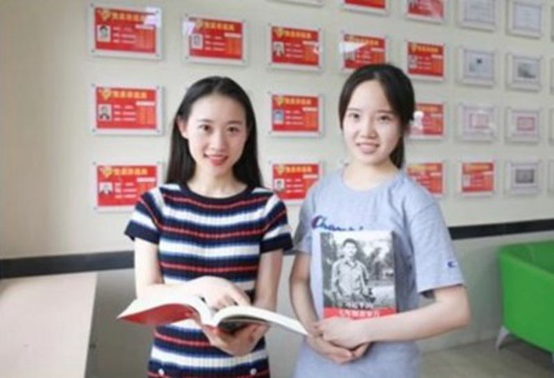 (马老师(左一)指导学生读《习近平的七年知青岁月》)