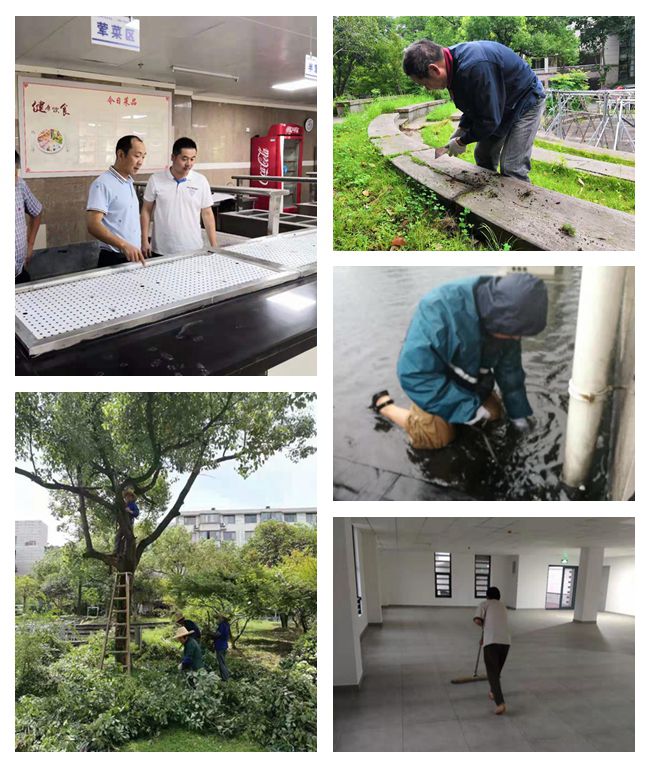 超强台风是后勤服务公司暑期工作的又一大挑战。当“利奇马”携风裹雨而来,后勤公司24小时值班严正以待。面对灾情险情,员工组成的一线“战斗堡垒”,关门窗、通水管、清屋顶、备食材等,奔波在抗台救灾的主战场,排除险情和隐患。由于准备充分,学校财产和师生生活没有受到太大的影响。